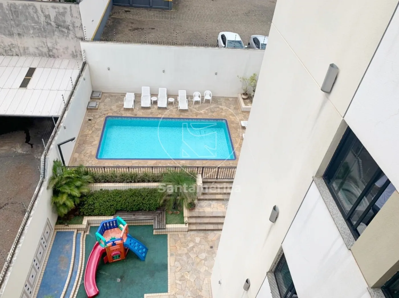 O condomínio conta com área de lazer com churrasqueira, piscina, playground, quadra de esportes e salão de festas.