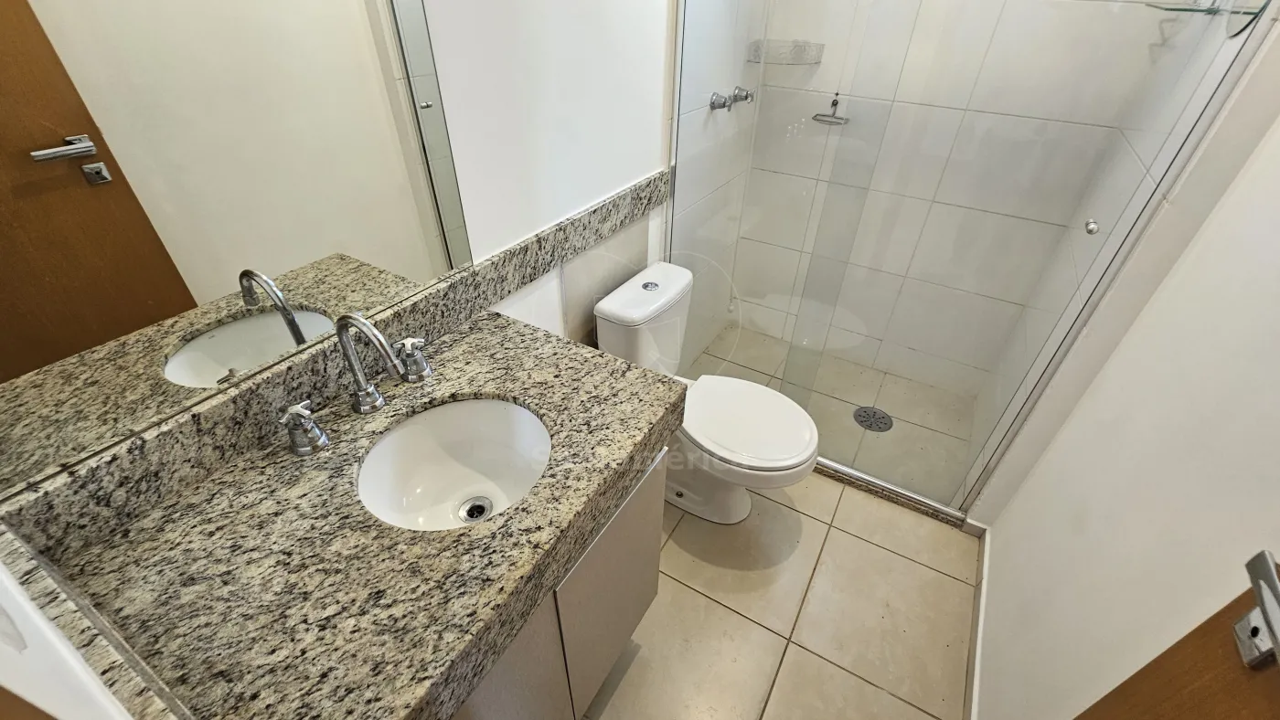 Apartamento para alugar no edifício Vivere Palhano, localizado na Gleba Fazenda Palhano, região Sul de Londrina, com 78m² de área privativa, contendo 3 dormitórios sendo 1 suíte com armários, sala para 2 ambientes, sacada com churrasqueira e screen glass, banheiro social com box em vidro, cozinha planejada, área de serviço e 2 vagas de garagem.