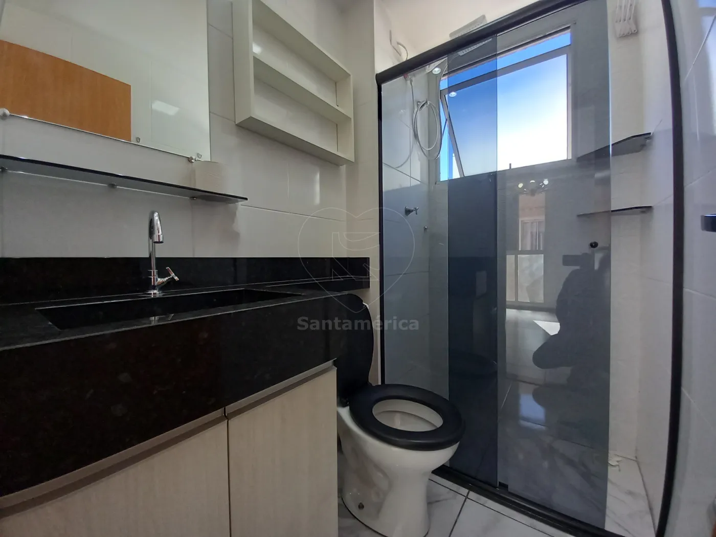 A cozinha planejada oferece praticidade e organização para o dia a dia, conectada à área de serviço funcional. O banheiro social conta com box em vidro e gabinete, completando o ambiente com conforto e bom gosto.
