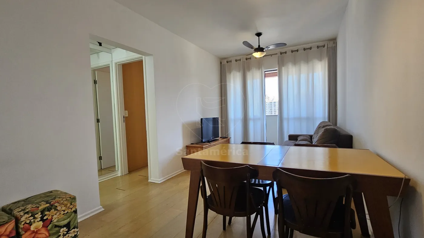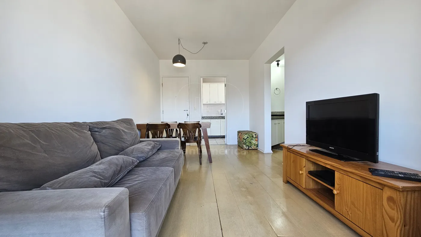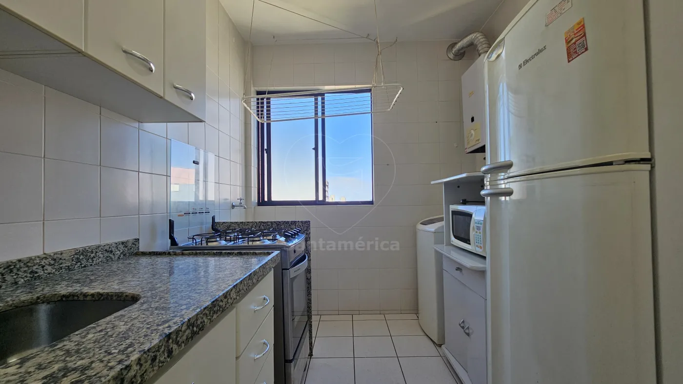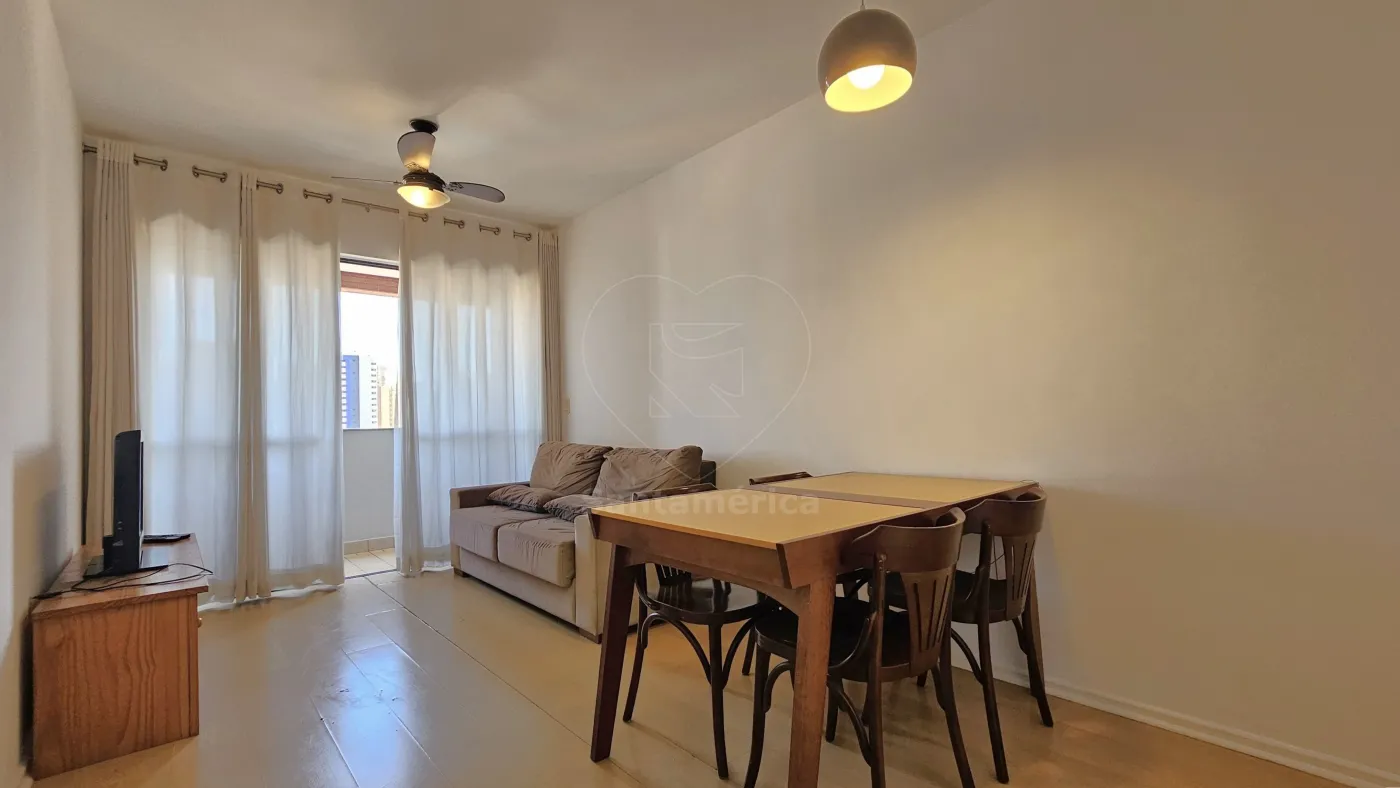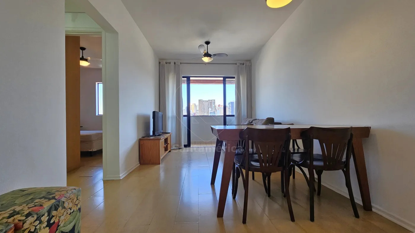 Apartamento mobiliado para alugar no Edifício Laguna, localizado na região Central de Londrina, com 45m² de área privativa, contendo sala para 2 ambientes com mesa (4 cadeiras), sofá, rack e televisão, Sacada, 1 Dormitório com armário e cama, Banheiro Social com box em vidro, Cozinha Planejada com fogão, geladeira e micro-ondas, Área de Serviço com máquina de lavar e 01 Vaga de Garagem.