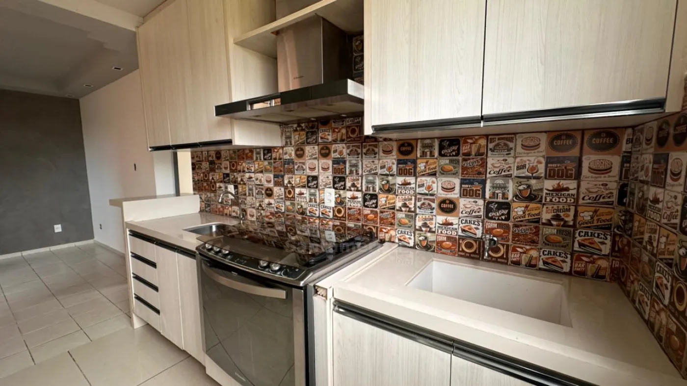 O imóvel possui 2 quartos, ambientes bem iluminados, sala de estar e uma cozinha planejada com forno, fogão e depurador, ideal para quem busca funcionalidade no dia a dia.