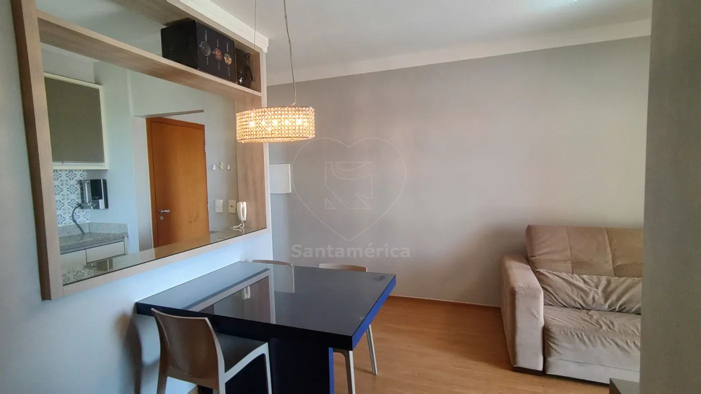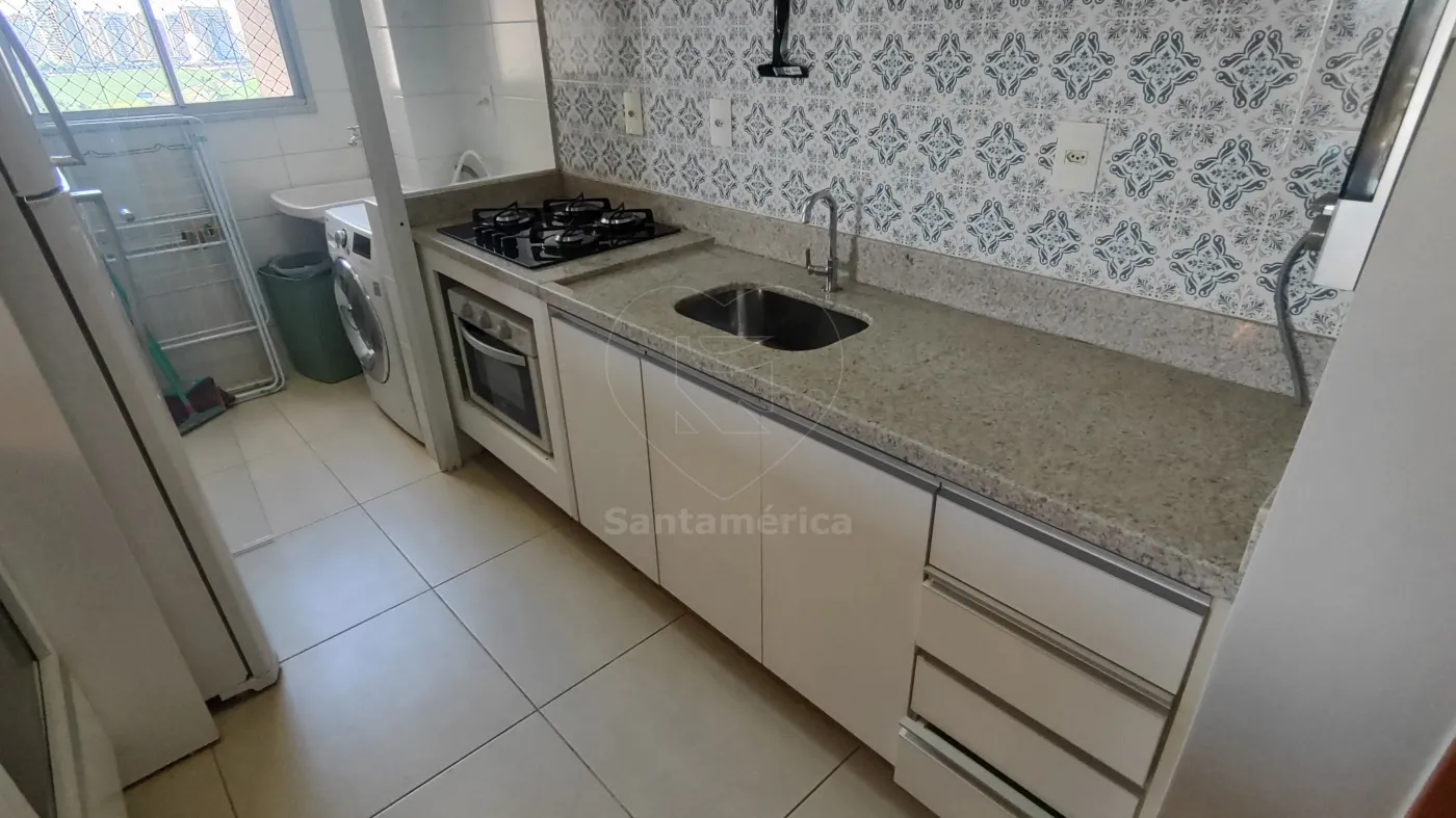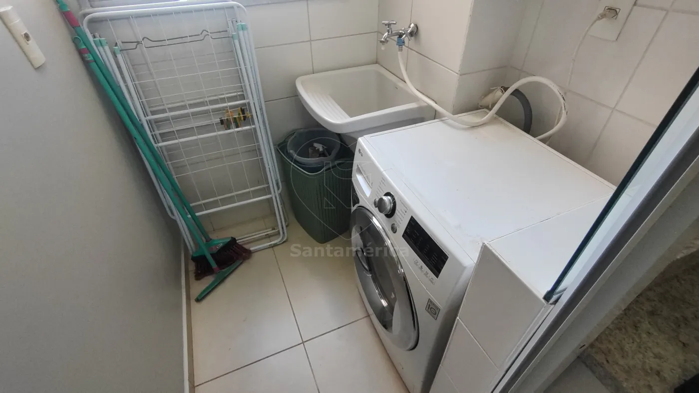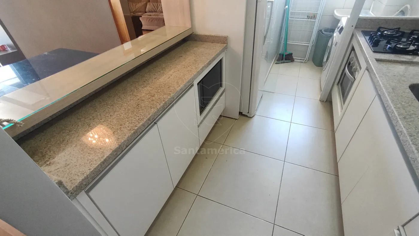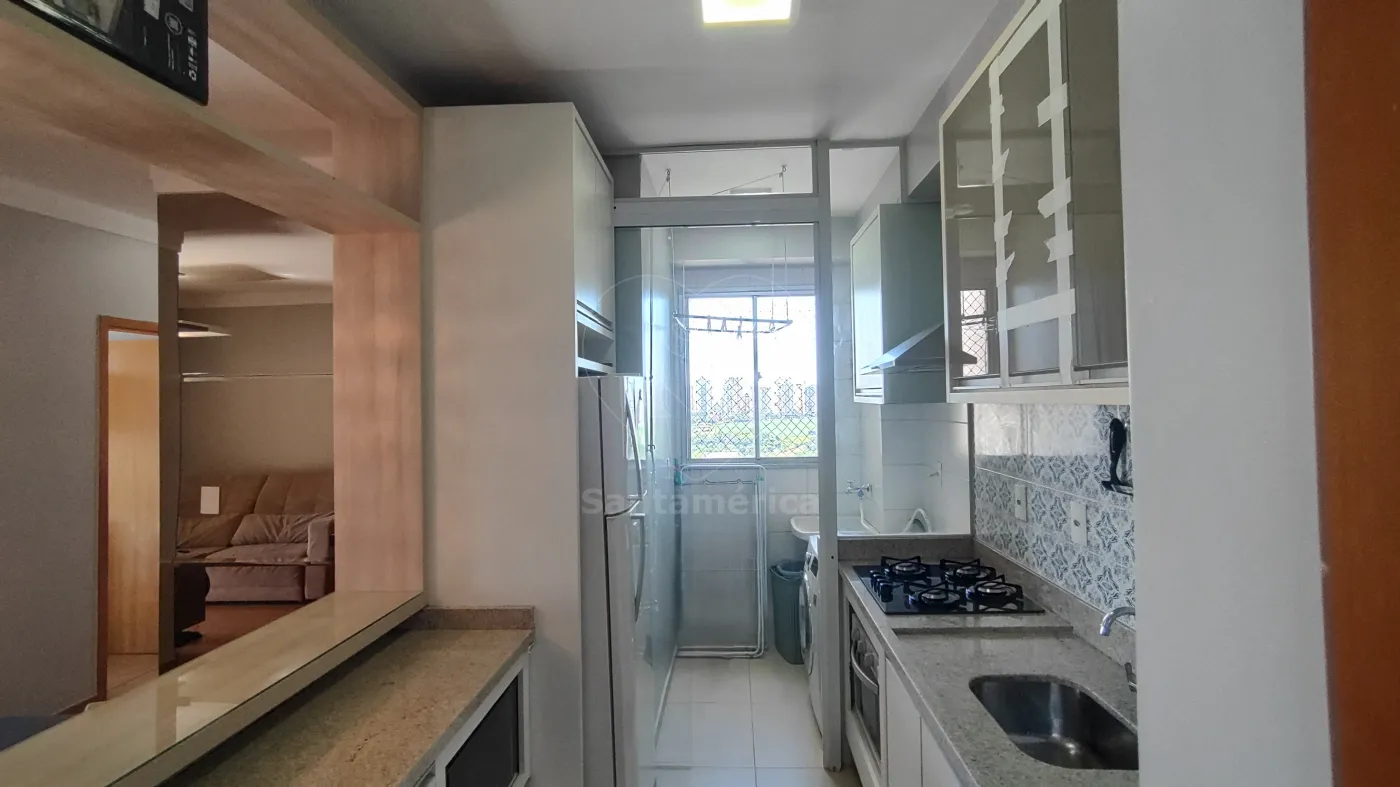 A sala para 2 ambientes é bem distribuída e funcional. A cozinha planejada dispõe de geladeira, cooktop, forno, micro-ondas e coifa. A área de serviço possui armários, máquina de lavar e secar, garantindo mais praticidade.