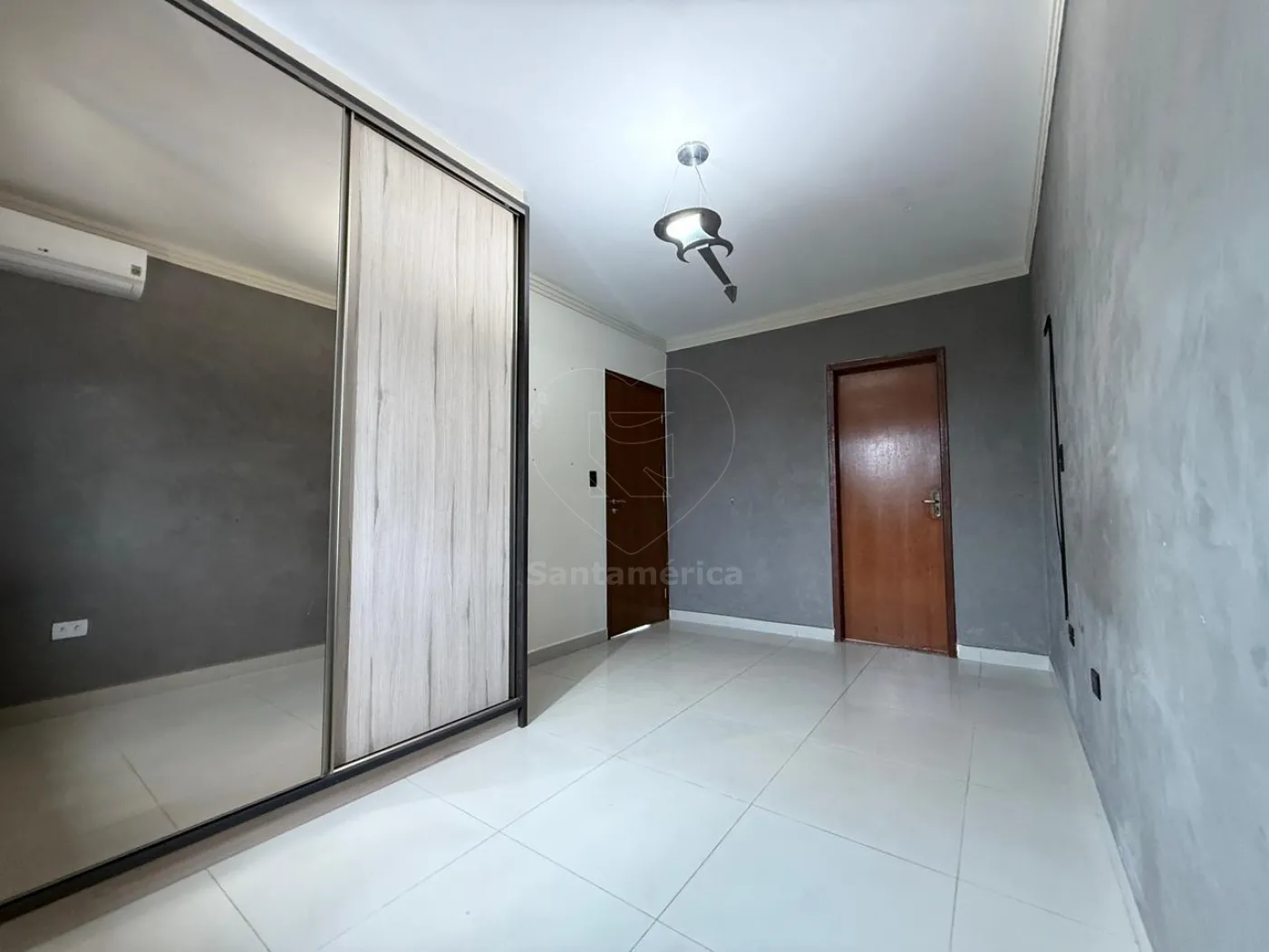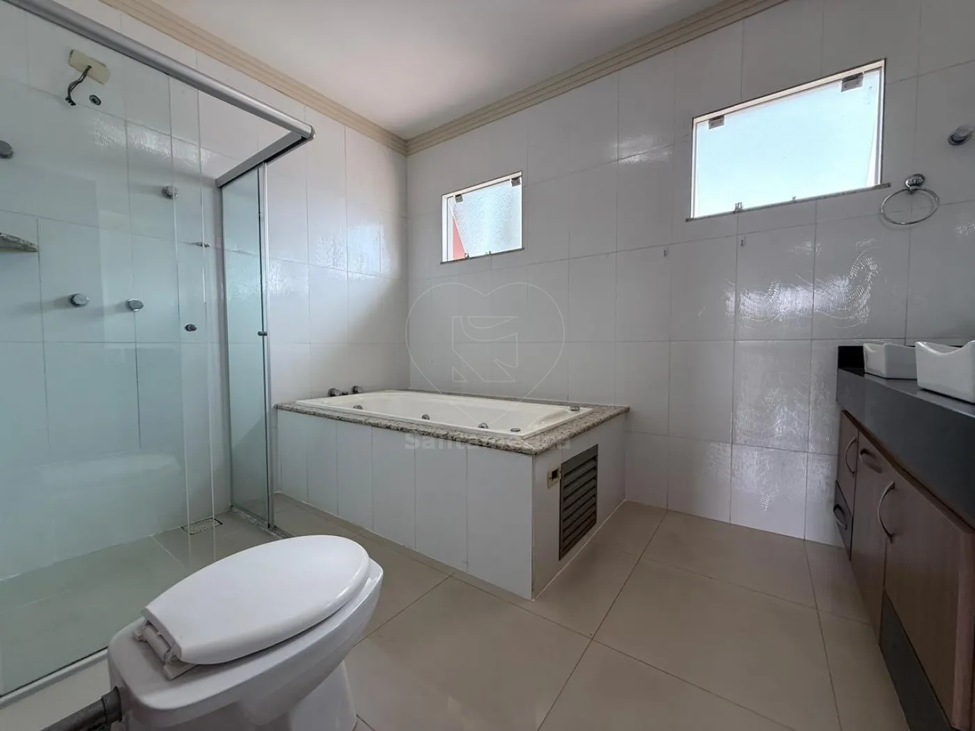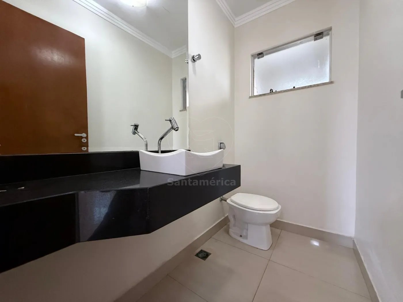 No piso inferior, há mais 1 suíte com ar-condicionado, cozinha planejada equipada com exaustor, forno e cooktop de quatro bocas, sala ampla em 2 ambientes com ar-condicionado de 18.000 BTUs e rack de TV planejado, lavabo, lavanderia, churrasqueira e piscina. Conta ainda com banheiro social, canil e garagem para quatro carros, sendo 2 vagas cobertas.