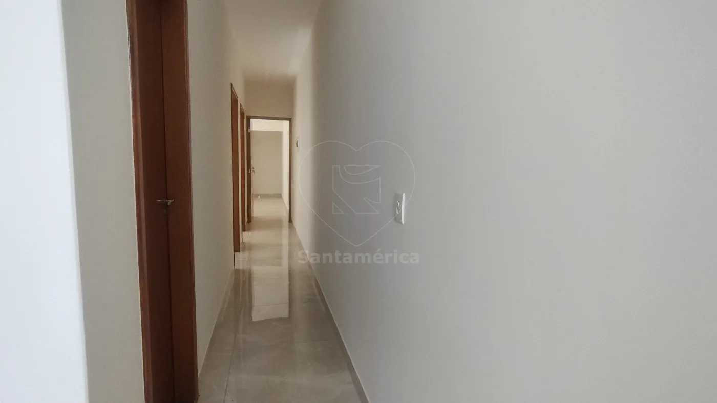 O imóvel dispõe de 1 cozinha com armários, área de serviço coberta, sala com 2 ambientes, 3 quartos sendo 1 suíte, banheiro social e banheiro da suíte contam com box de vidro e gabinete. Nos fundos há banheiro de serviço, uma dispensa e churrasqueira. O piso é todo em porcelanato.