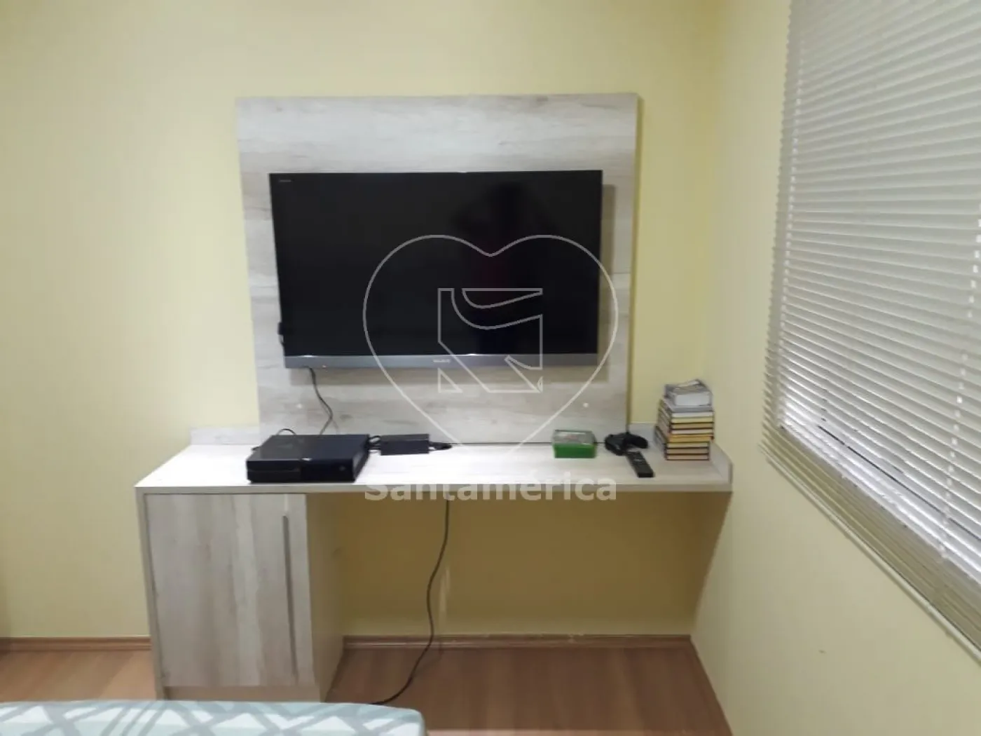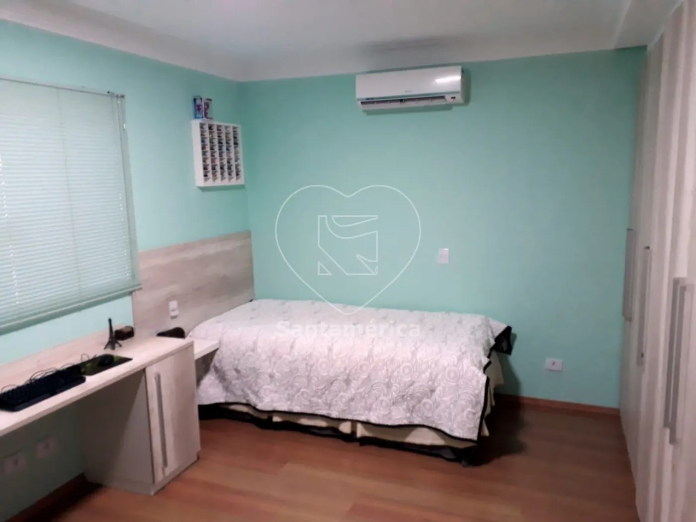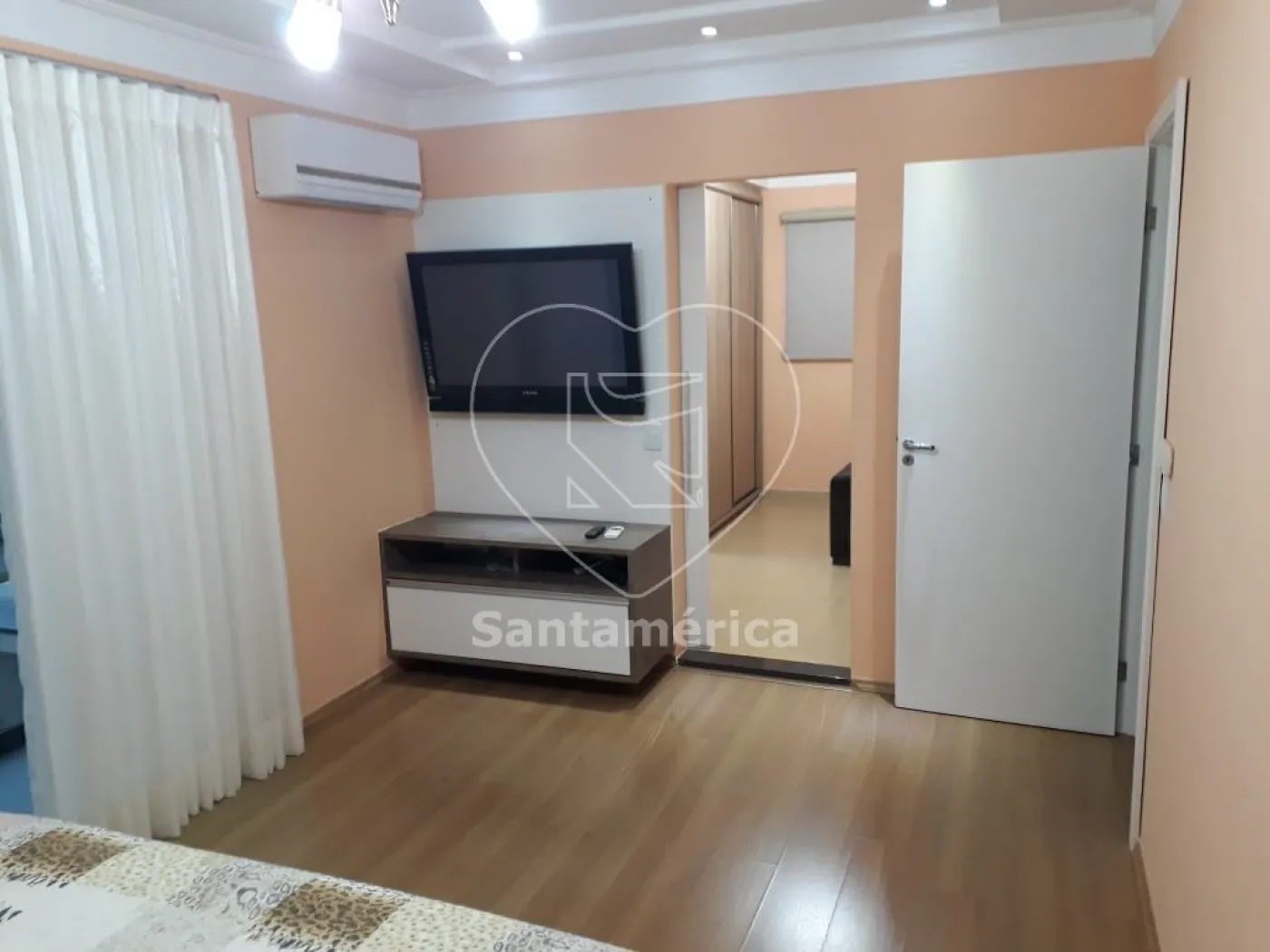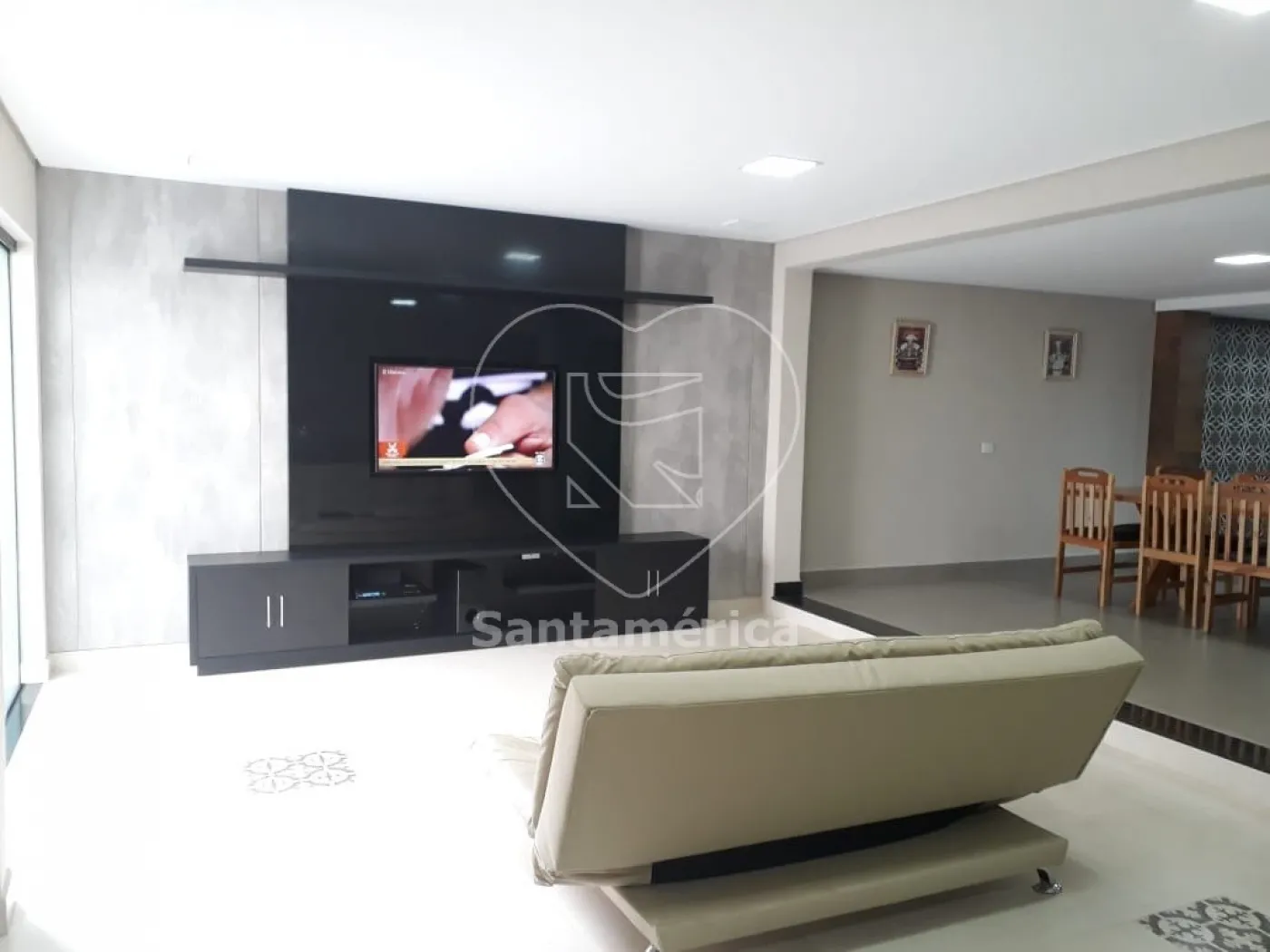 O imóvel conta com 3 quartos, sendo 1 suíte com hidromassagem e closet, além de armários e ar-condicionado em todos os quartos. Possui banheiro social, lavabo, garagem para 4 carros e uma ampla sala de TV com painel embutido e TV Smart.