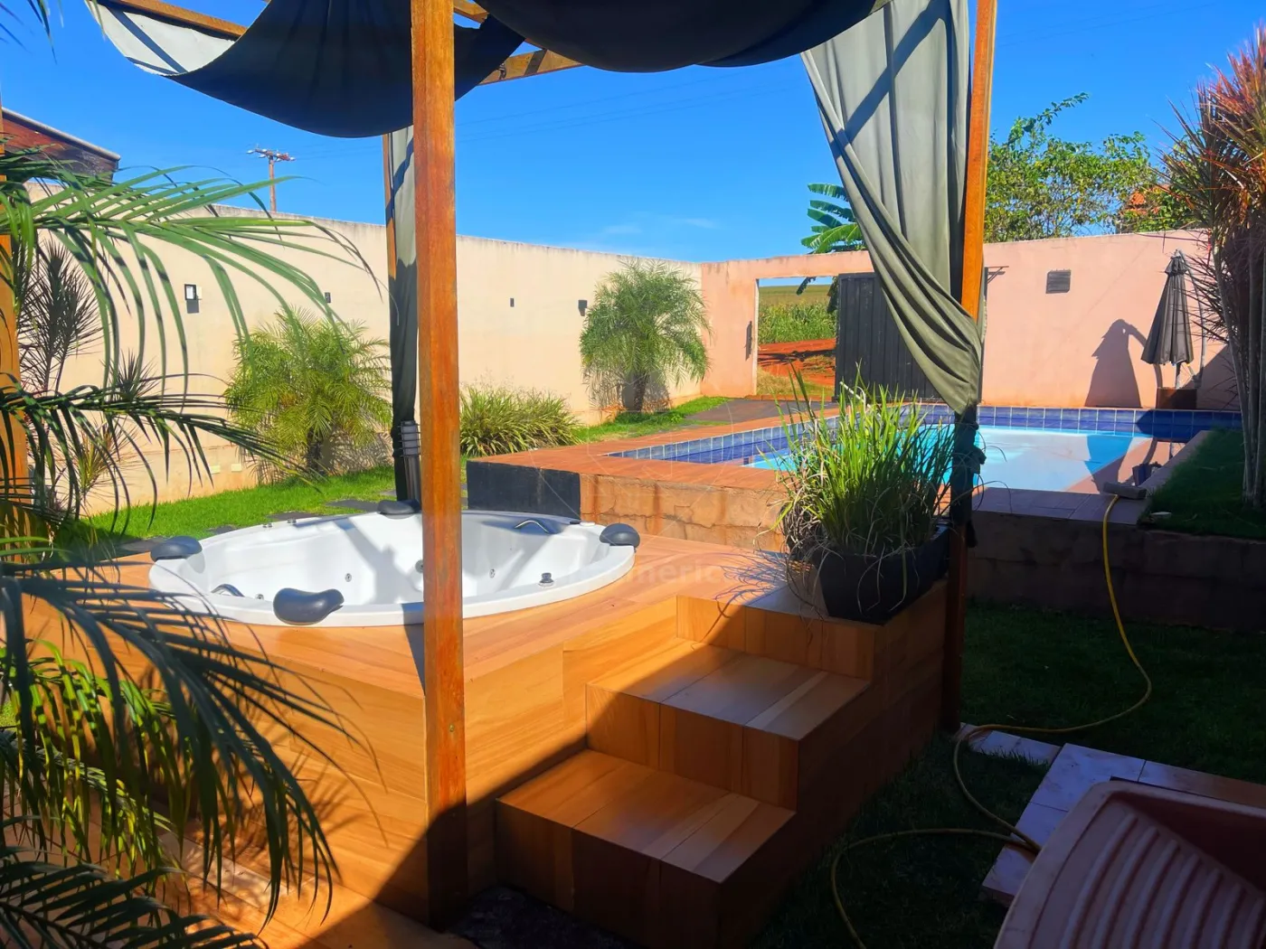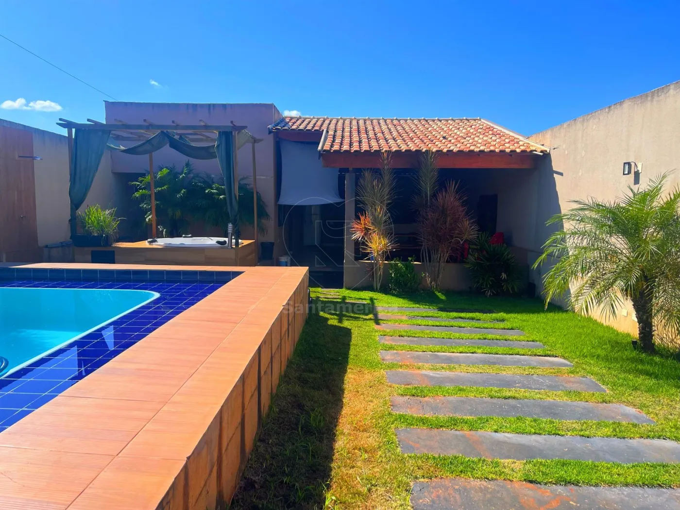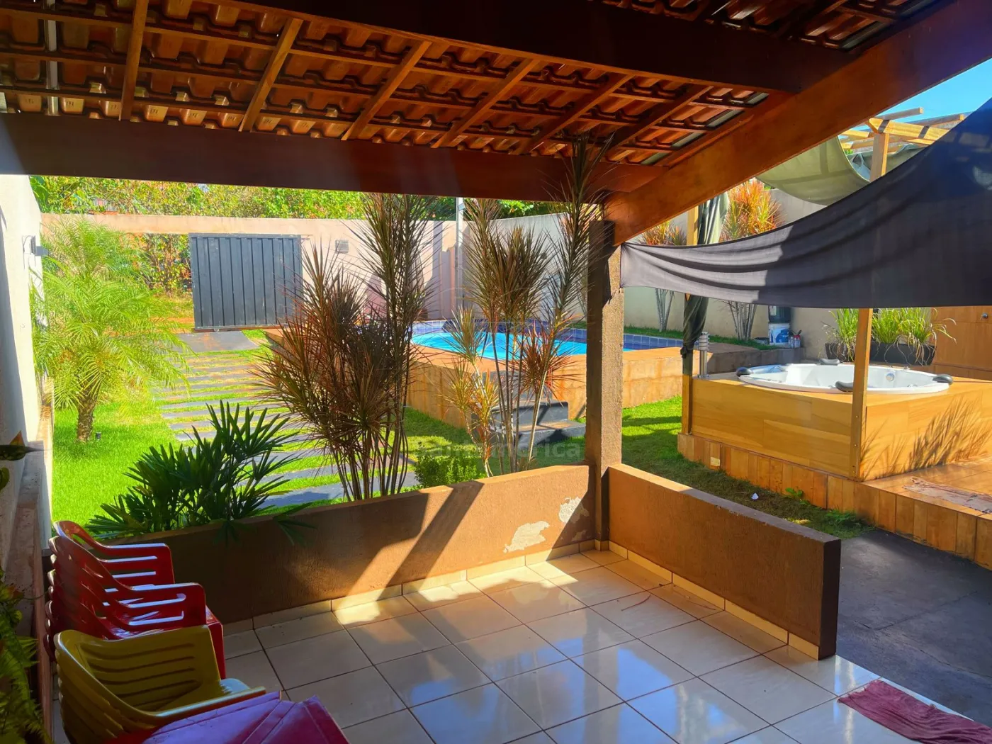 O imóvel possui 90m² de área construída, com 2 quartos, 2 banheiros, além de uma ampla área coberta com churrasqueira e pia, ideal para confraternizações. Conta ainda com piscina alagada com cascata, medindo 8mx4,30m, e banheira de hidromassagem para 4 pessoas, um verdadeiro refúgio para momentos de descanso e diversão!
