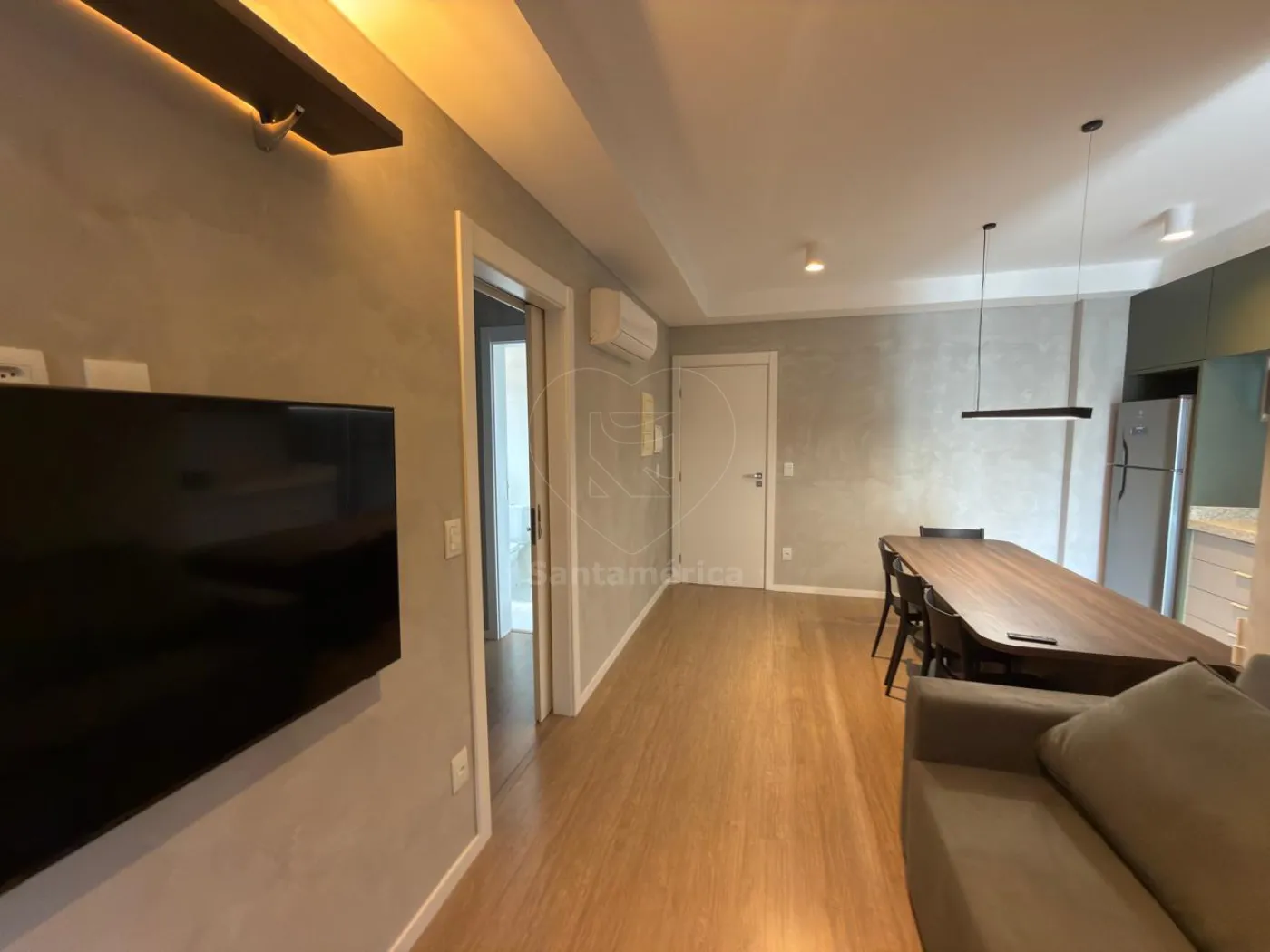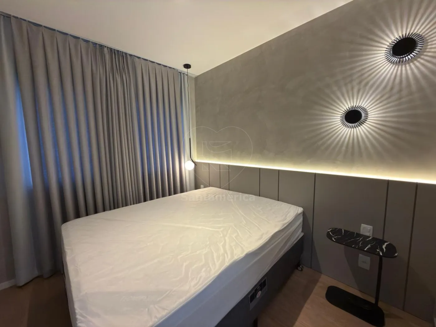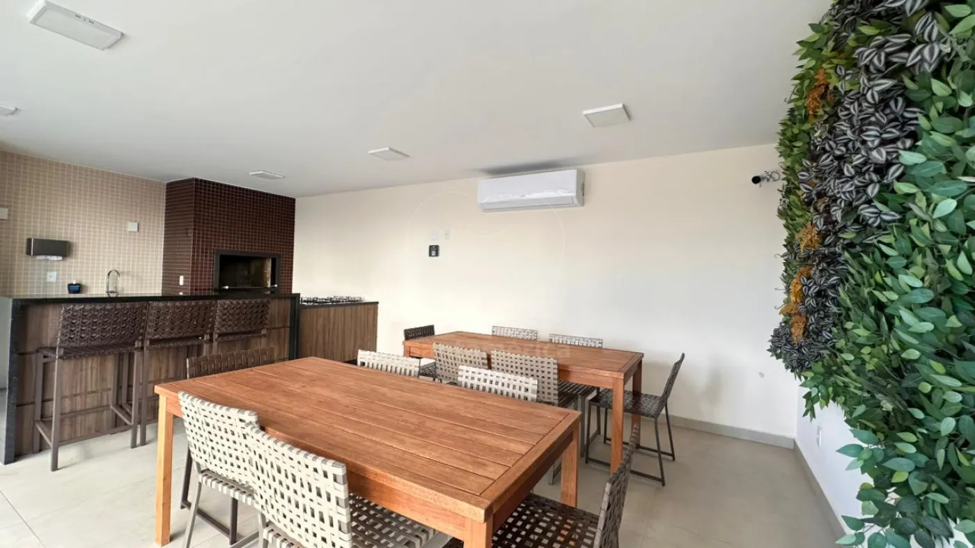 Totalmente mobiliado e pronto para morar, possui geladeira, micro-ondas e depurador de ar na cozinha, mesa, sofá e televisão na sala, 2 aparelhos de ar condicionado (quarto e sala), cama confortável e ambientes climatizados, banheiro social e 1 vaga de garagem privativa.