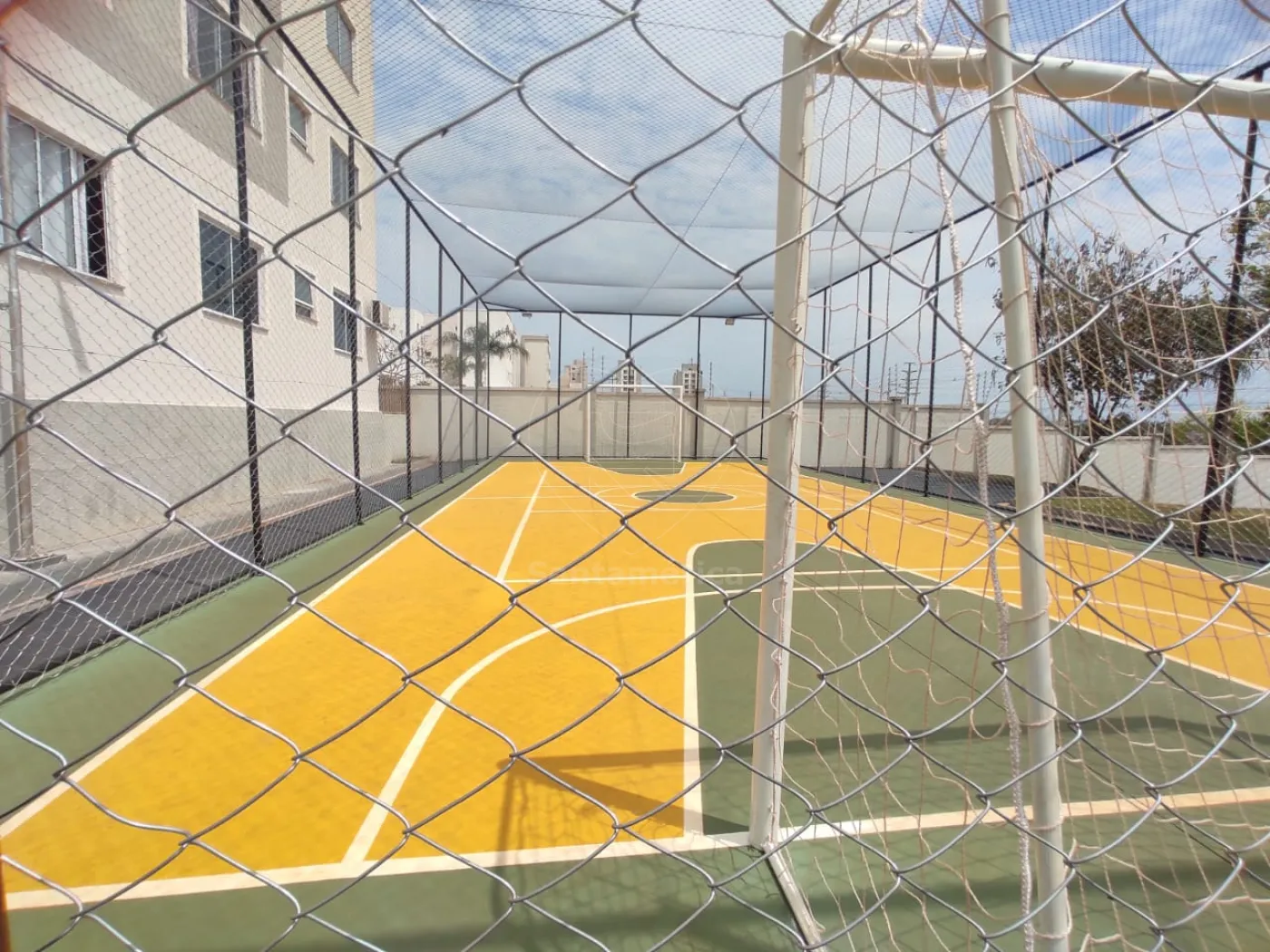 O condomínio oferece portaria 24 horas, quadra poliesportiva e churrasqueiras para momentos de lazer.