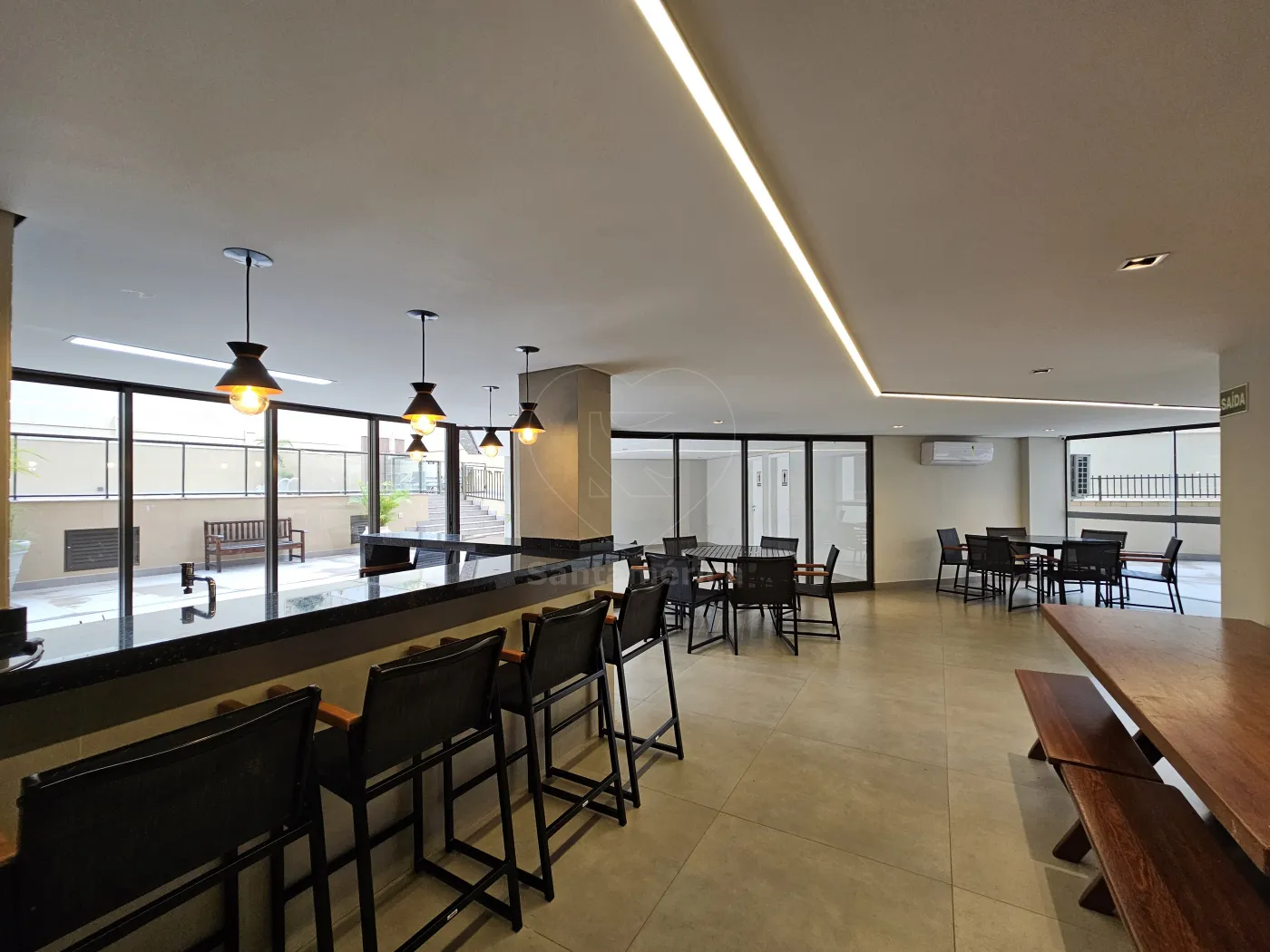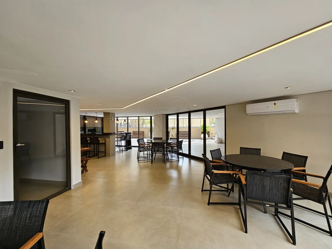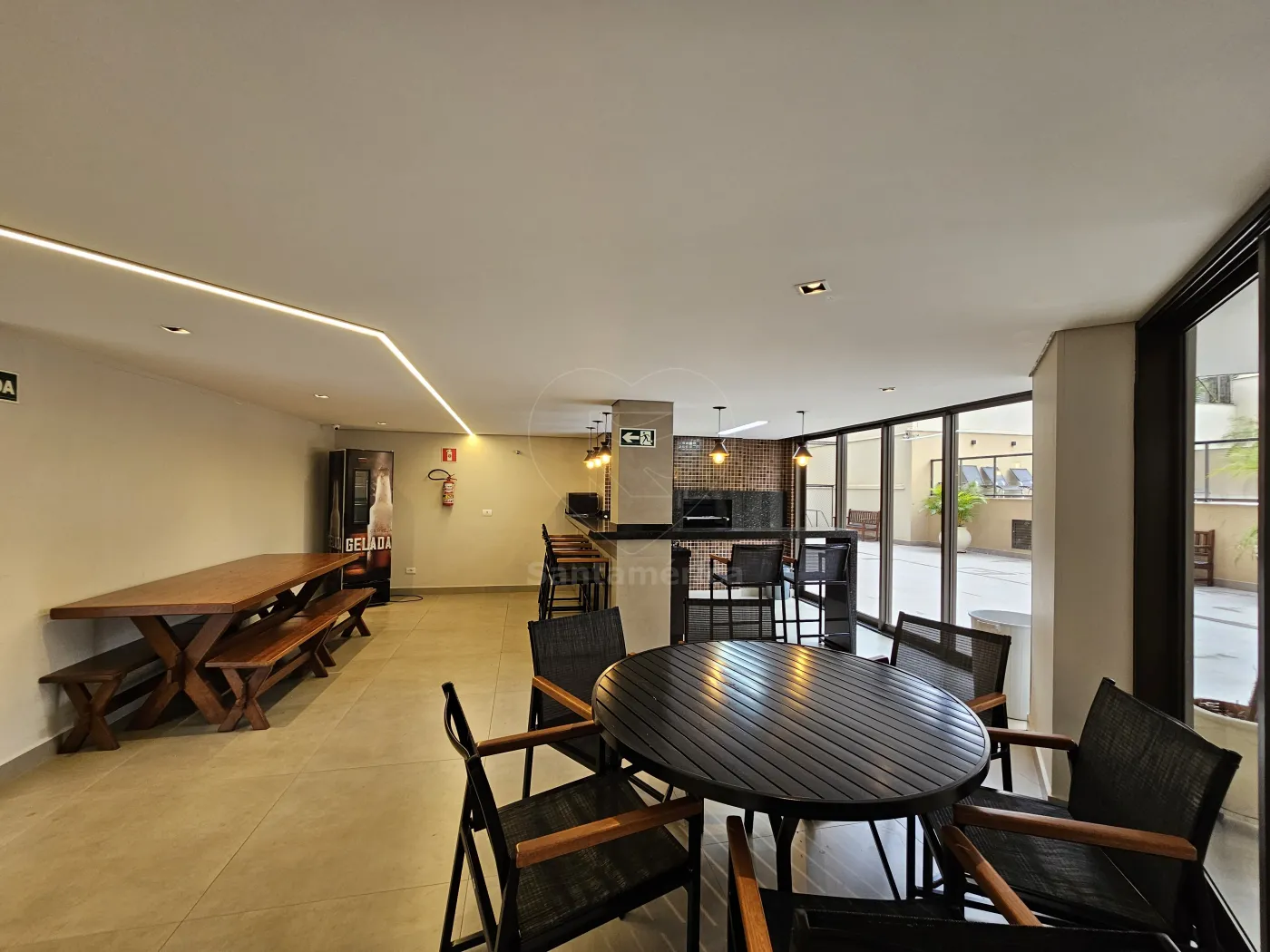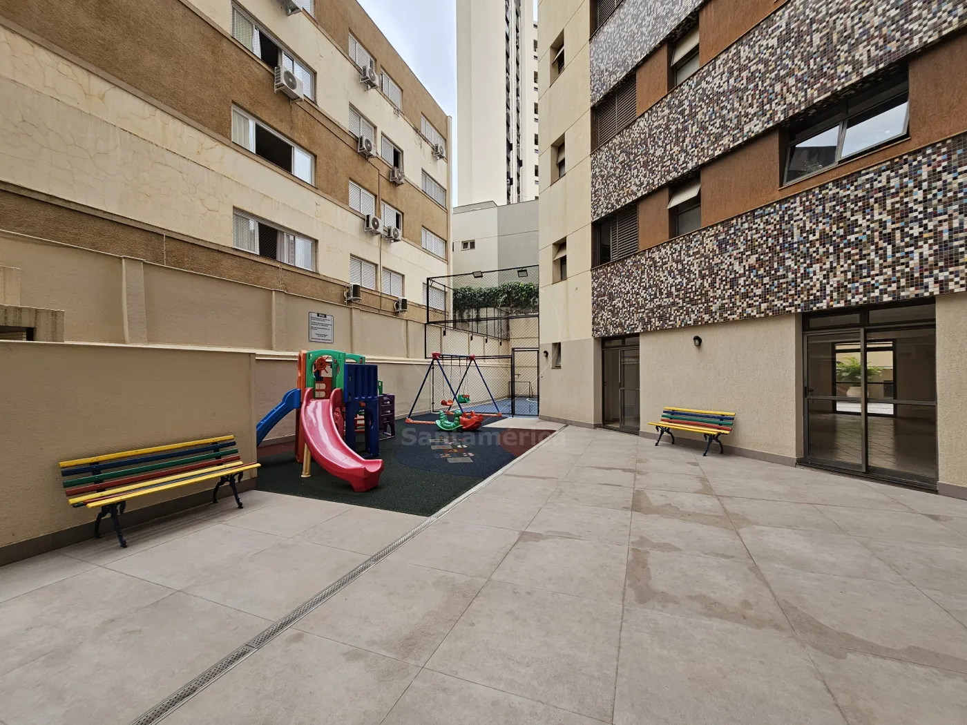 O condomínio oferece portaria 24 horas e área de lazer completa.