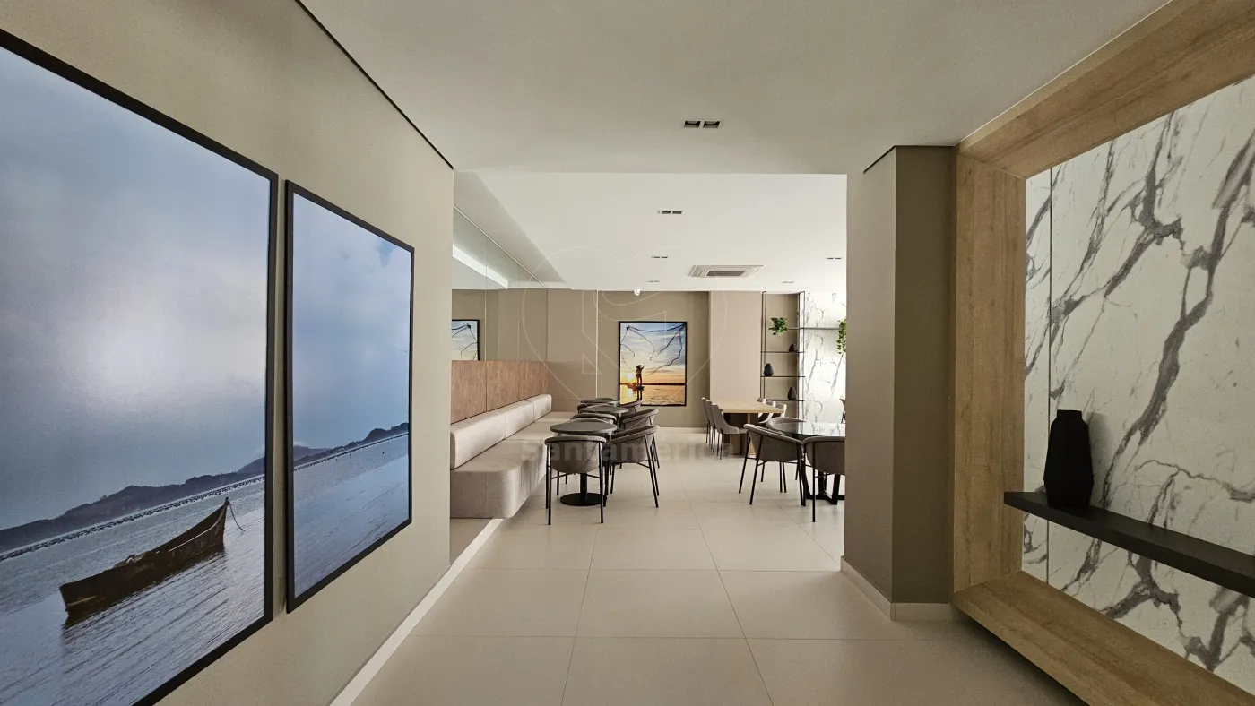 Este apartamento possui 2 dormitórios, sendo 1 suíte, com armários planejados nos quartos e na cozinha. A sala é integrada à cozinha e à sacada gourmet, que conta com churrasqueira e uma vista panorâmica. O imóvel possui ainda 1 banheiro social, área de serviço e 2 vagas de garagem.