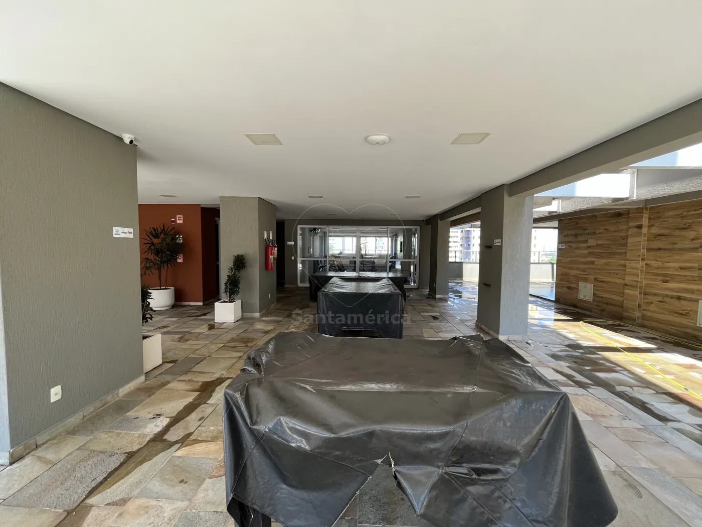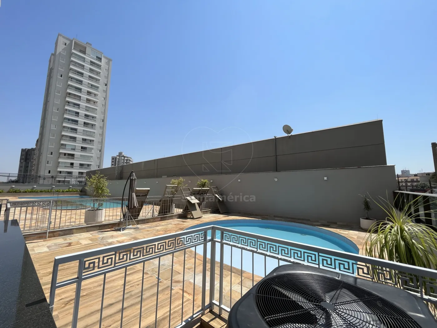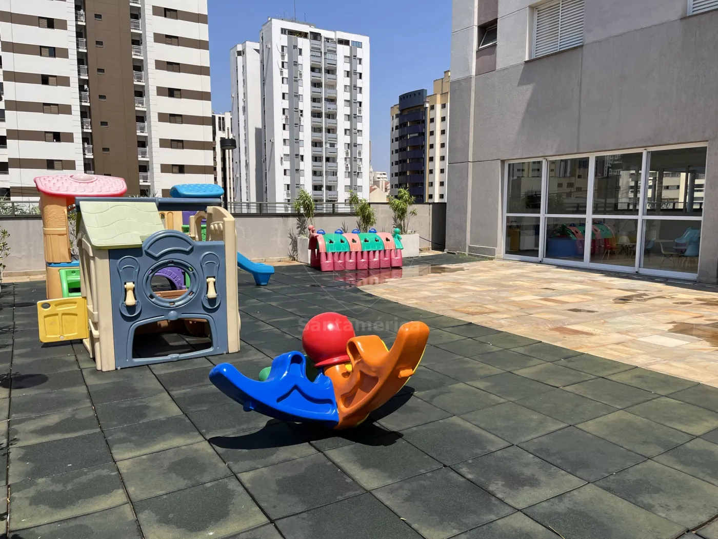 O condomínio oferece uma área de lazer completa com 3 piscinas, incluindo piscina com quebra-gelo, espaço kids com brinquedoteca e playground, 2 churrasqueiras, 2 salões de festas, academia e sala de jogos. A portaria funciona 24 horas e o prédio conta com quatro elevadores, garantindo segurança e conforto para os moradores.