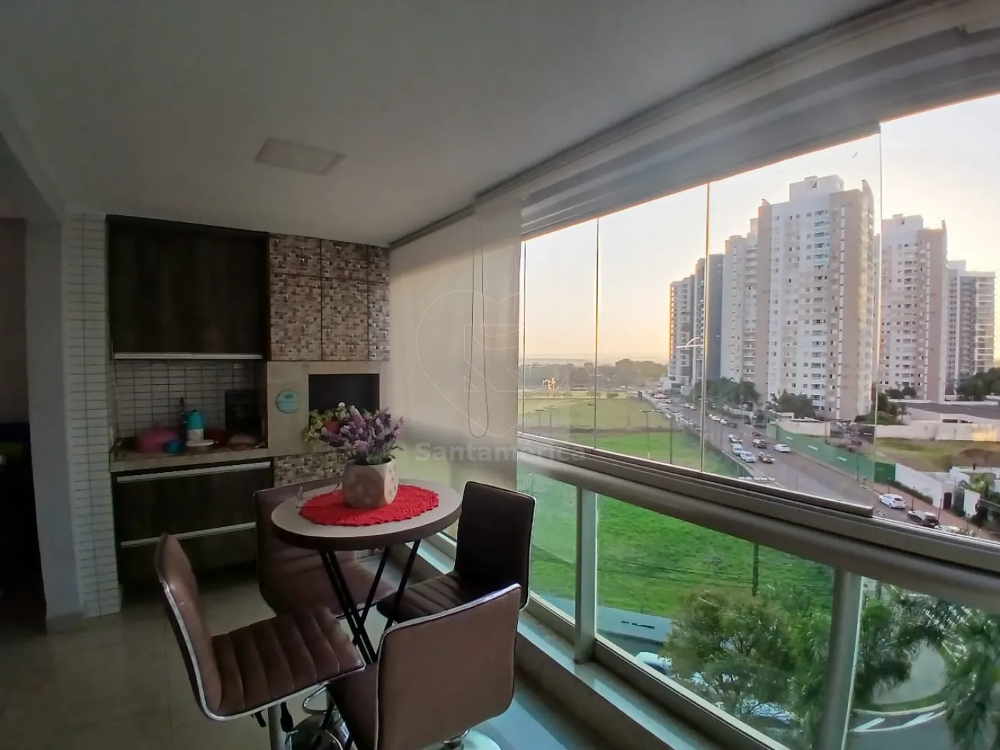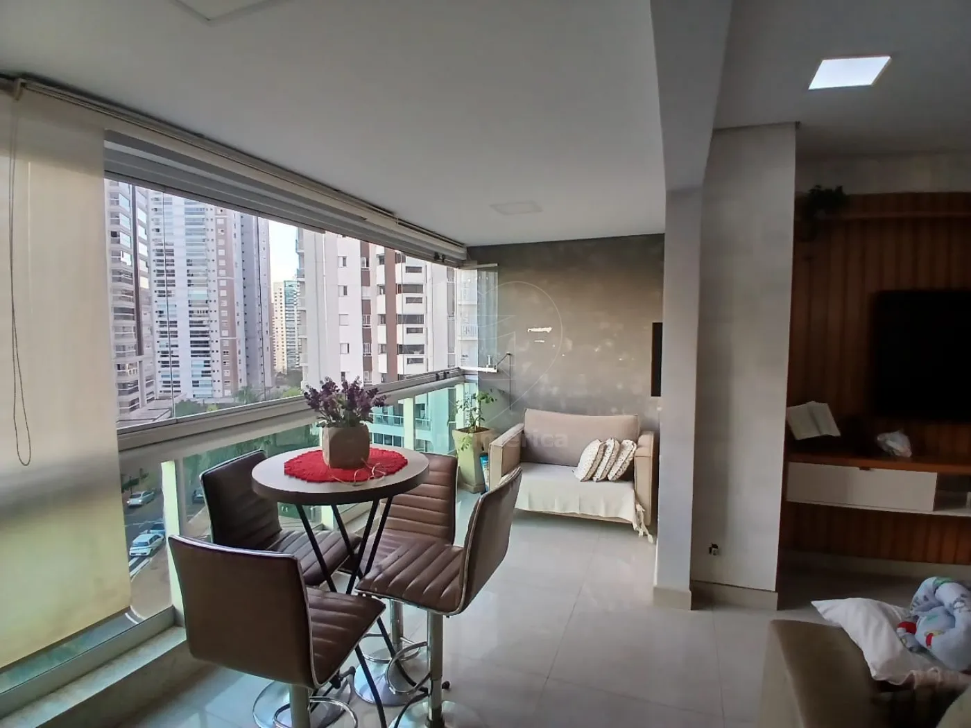 O imóvel possui 3 quartos, sendo 1 suíte, todos completos de armários. Conta com sala ampla para 2 ambientes com ar-condicionado integrada à sacada fechada com screen glass, escritório, lavabo, cozinha planejada e área de serviço planejada.