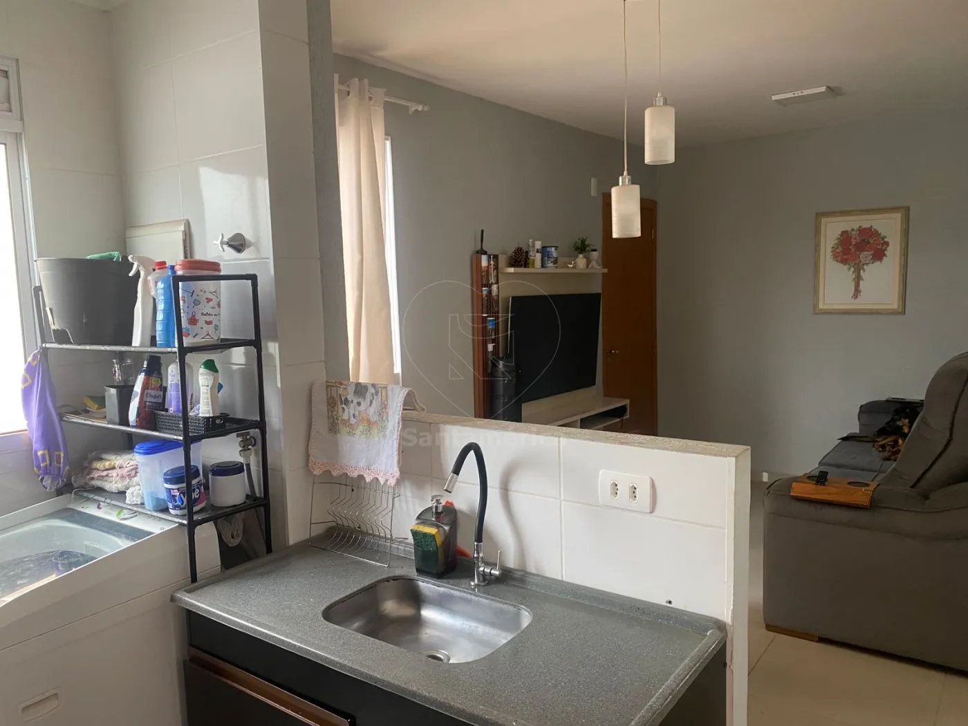 A planta é bem distribuída, com sala de estar aconchegante, cozinha integrada com armários planejados e área de serviço funcional. O banheiro social já está equipado com box em vidro.