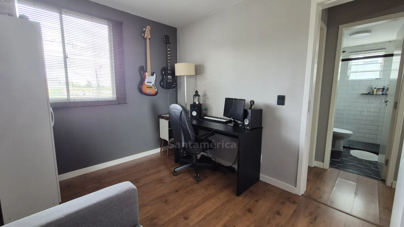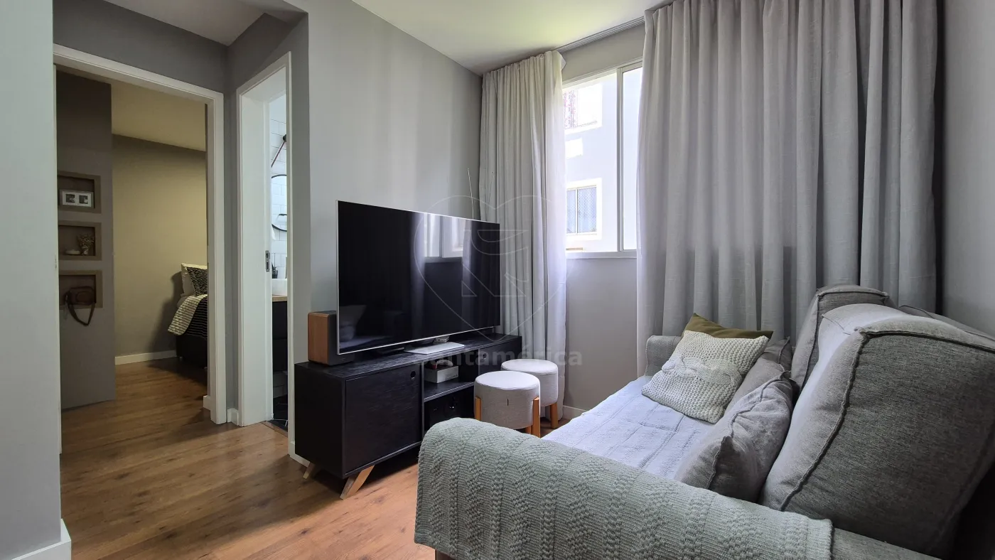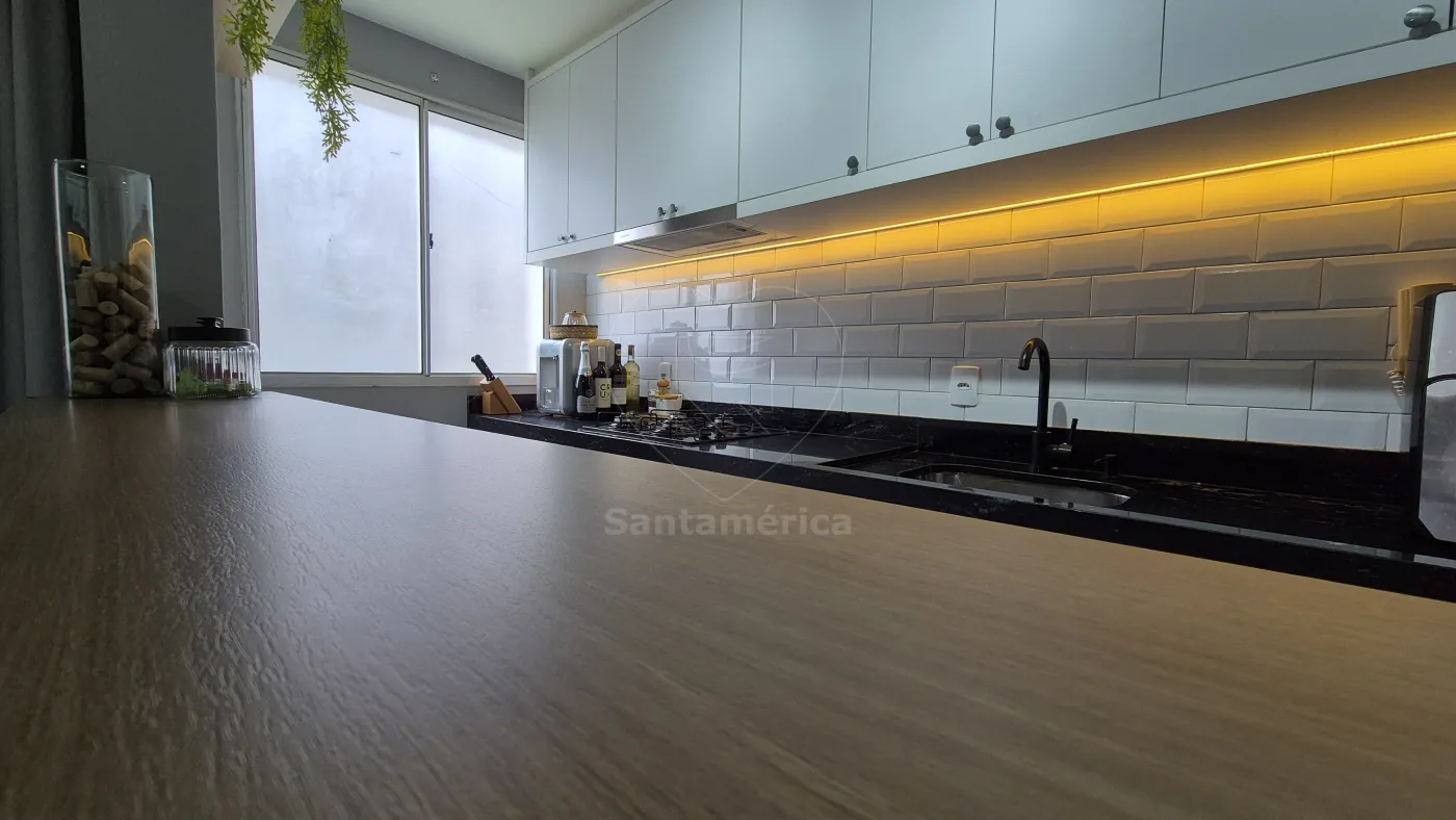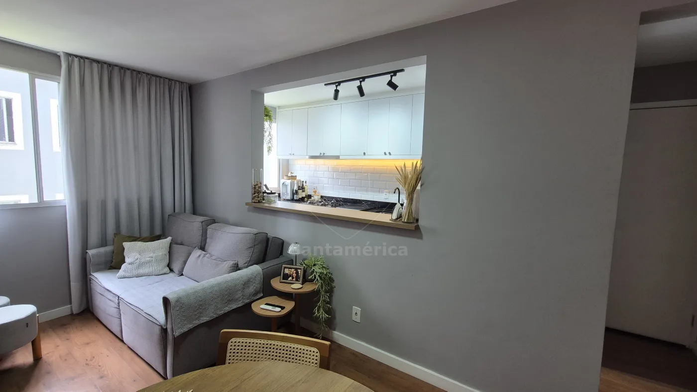 O imóvel conta com 2 quartos, sendo 1 deles com armário planejado, ar-condicionado e cama. Sala para 2 ambientes com aparador, painel de televisão e sofá. Cozinha com armários planejados, geladeira, cooktop, lava-louças e lava e seca. O banheiro social com gabinete planejado, cuba de sobrepor, box em vidro, área de serviço e uma vaga de garagem coberta. Sala e dormitórios com laminado.