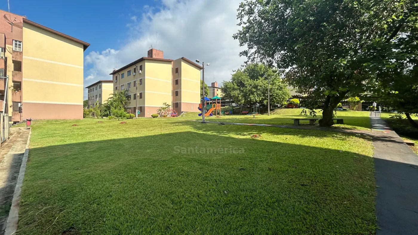 O condomínio oferece portaria 24 horas, quadra poliesportiva e playground, proporcionando estrutura para o dia a dia dos moradores.