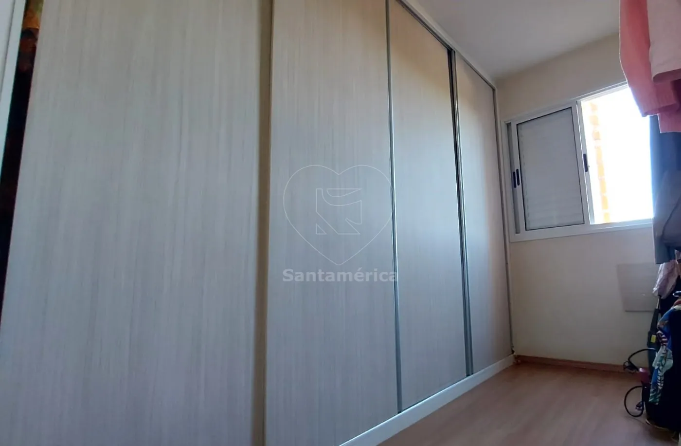 O quarto menor conta com armários planejados em toda a parede e nicho com armários do outro lado. O quarto do casal dispõe de guarda-roupa com 4 portas (2 com espelho), painel de televisão grande com nicho, espelho lateral, armário comprido com divisórias sob a janela e mais espaço para organização. A sacada possui armários planejados e uma cristaleira na entrada do apartamento, oferecendo charme e funcionalidade.