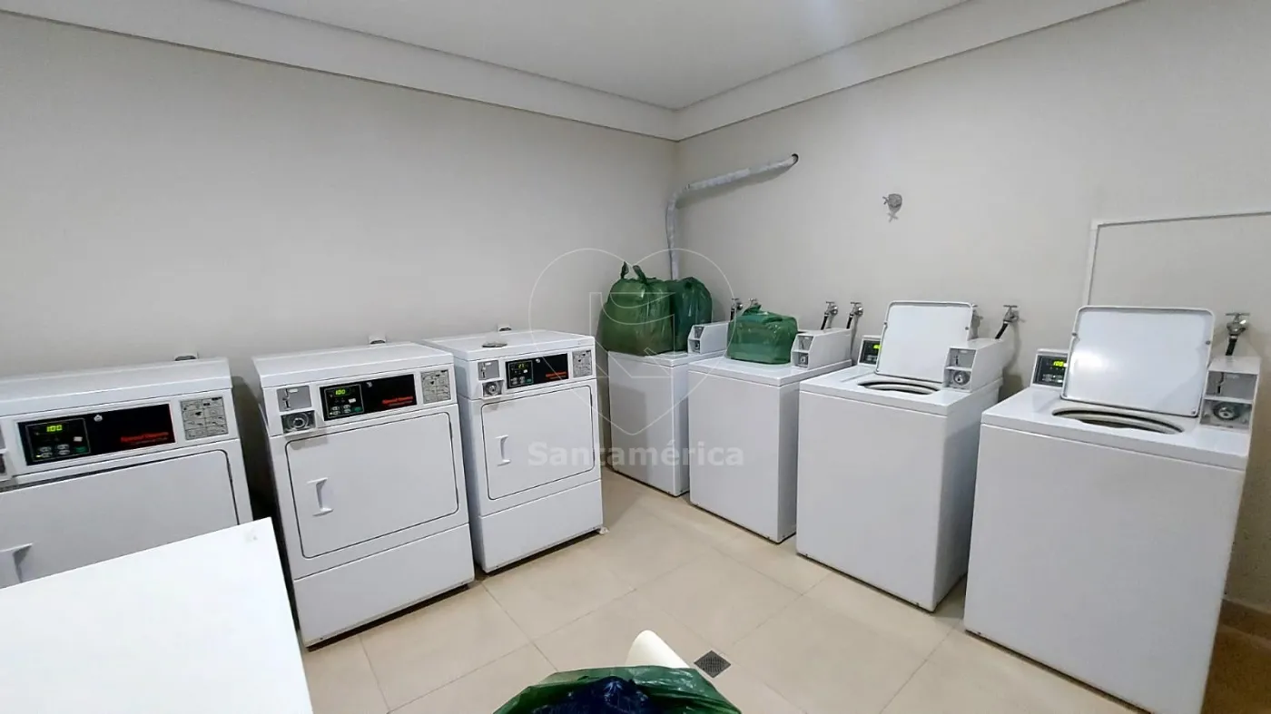 A cozinha é planejada com armários dos dois lados e equipada com fogão novo Electrolux de 5 bocas. A lavanderia possui armários planejados e máquina de lavar roupas Electrolux de 15 kg semi nova, garantindo praticidade no dia a dia.