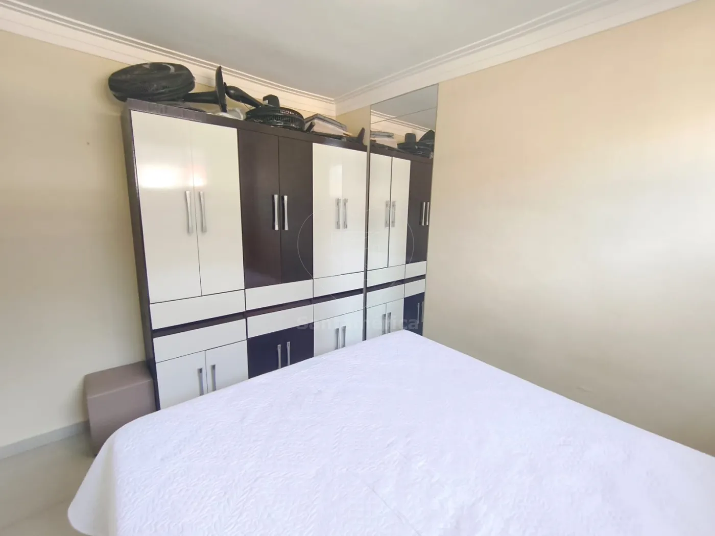O imóvel está todo mobiliado, exceto a TV, e conta com todos os itens necessários para moradia: camas, guarda-roupas, geladeira, fogão, sofá e demais mobílias essenciais. Possui 2 quartos, sendo 1 quarto de casal com suíte, além de 1 banheiro social.