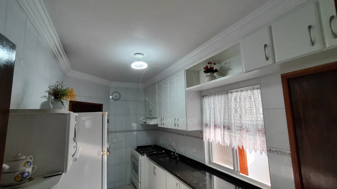 Possui 3 quartos com armários embutidos, sendo 1 suíte, sala ampla com dois ambientes, jantar e estar, sacada, cozinha planejada com fogão embutido, área de serviço, quarto e banheiro de serviço.