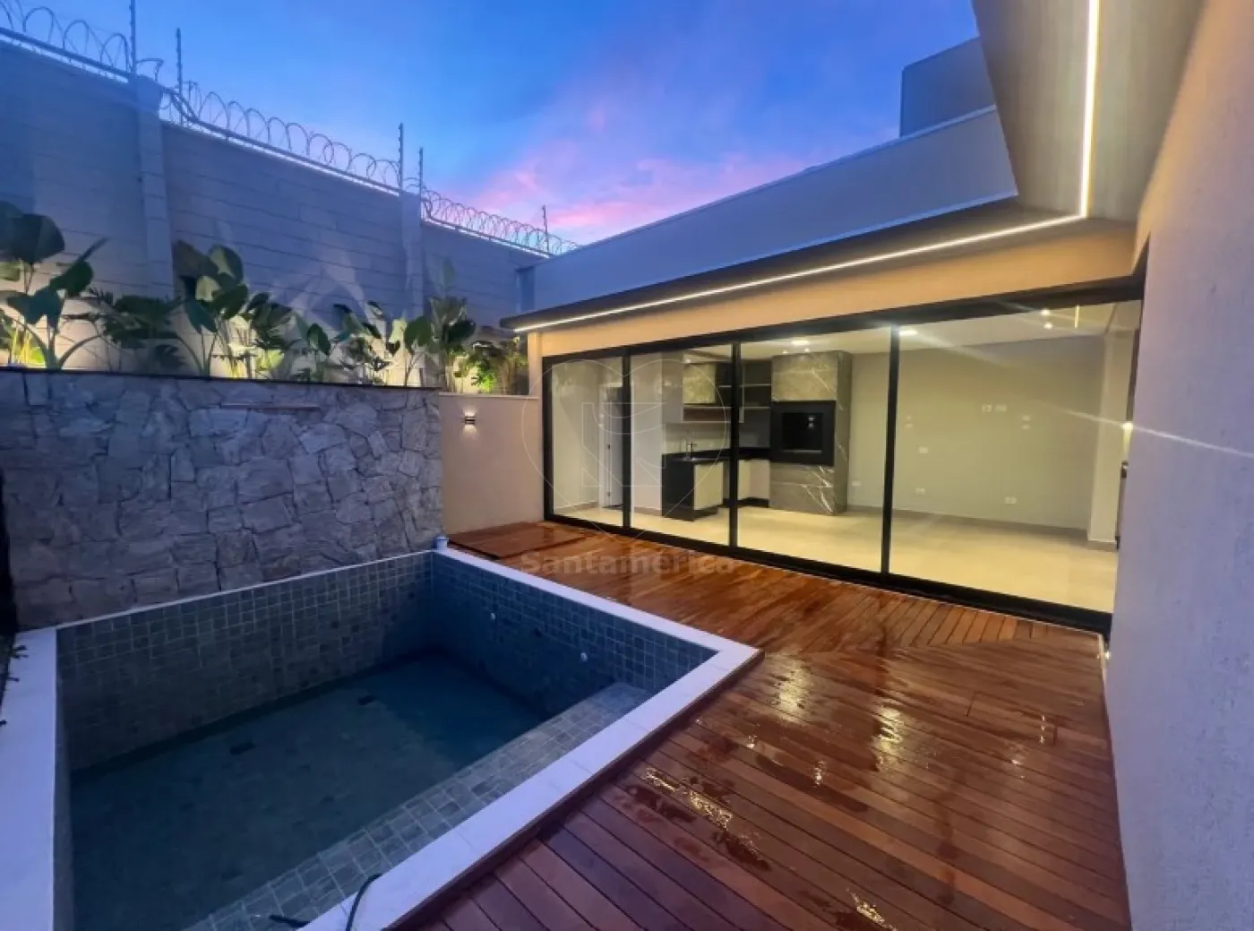 A área externa é um verdadeiro refúgio particular, com área gourmet equipada com churrasqueira e um belo deck de madeira, além de 1 piscina com prainha, hidromassagem, cascata e aquecimento, ideal para relaxar em qualquer época do ano. O projeto luminotécnico moderno valoriza todos os ambientes e garante aconchego e sofisticação.