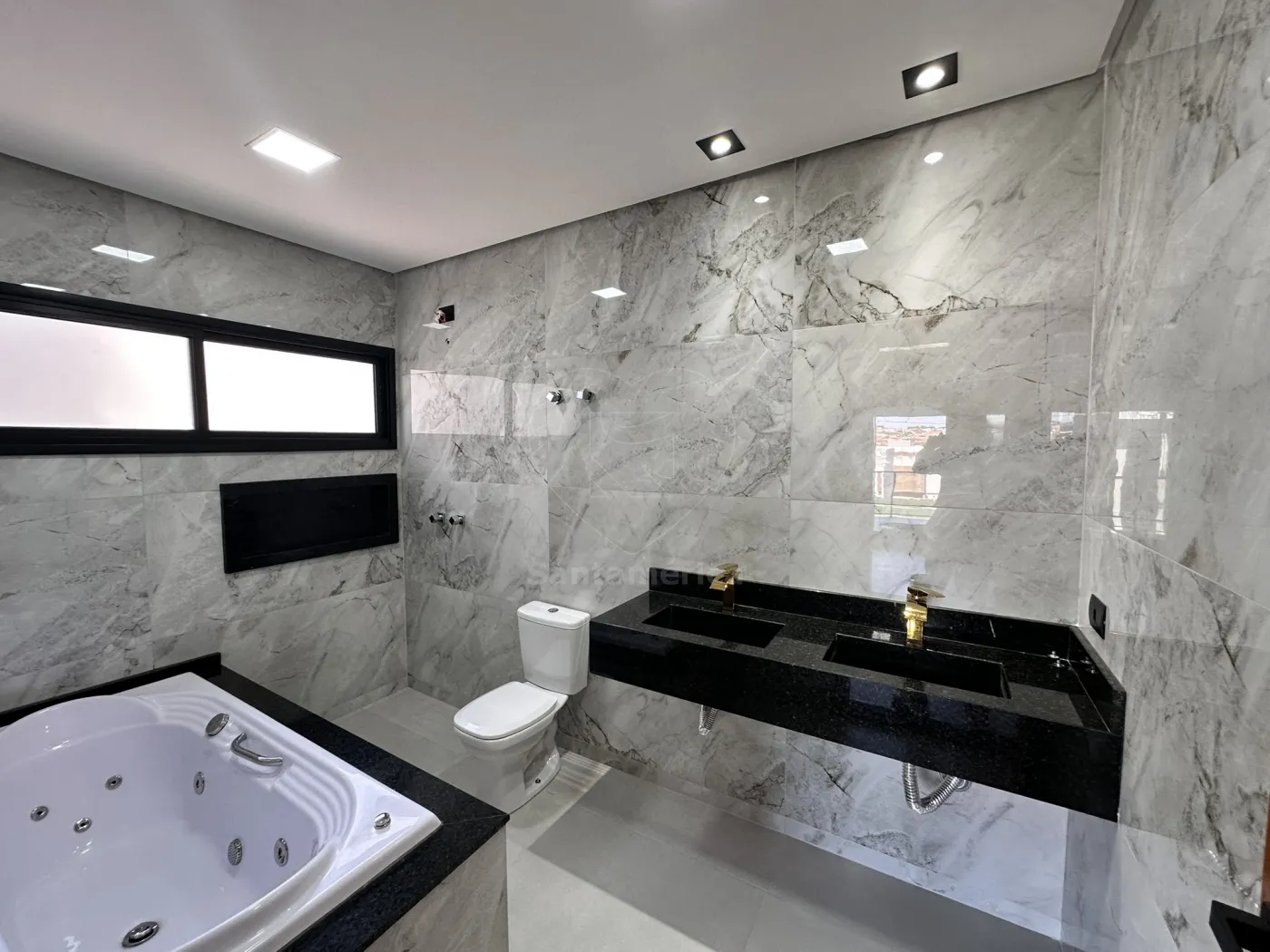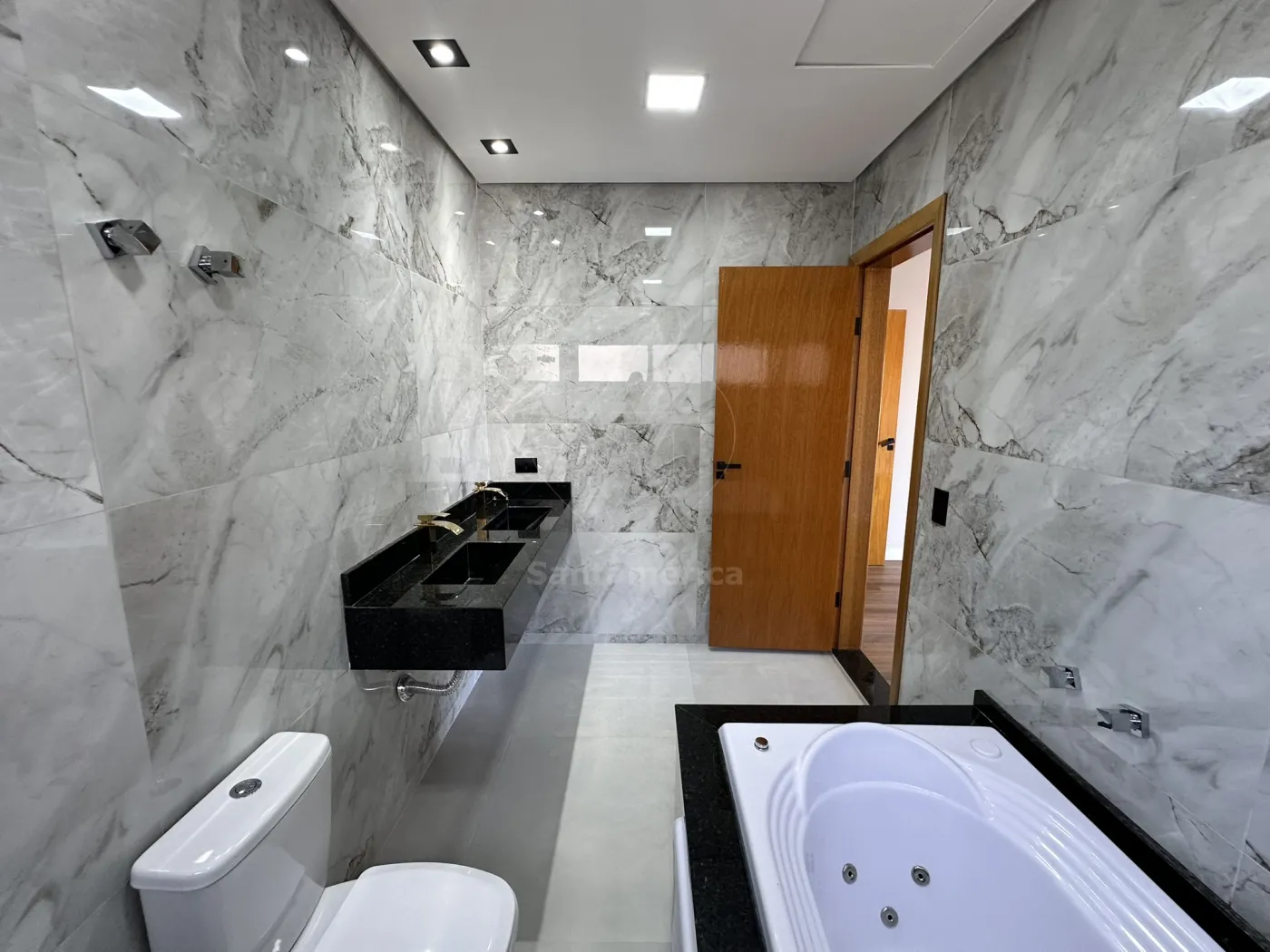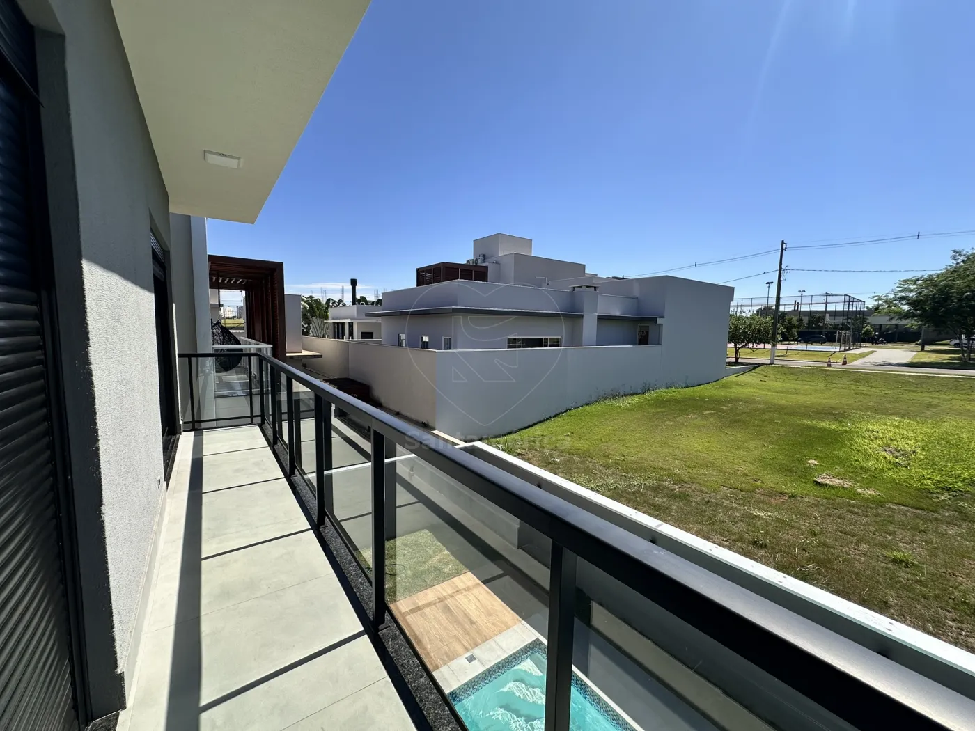 Subindo ao piso superior, você encontra 3 suítes deslumbrantes, todas com sacada e persianas automatizadas, sendo 1 suíte master, que proporciona uma experiência única de bem-estar com sua banheira de hidromassagem!