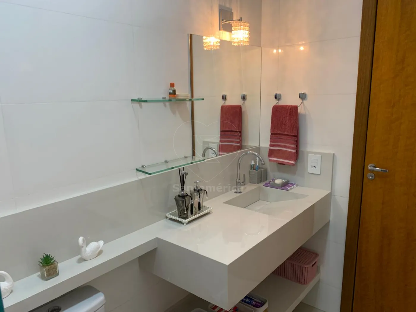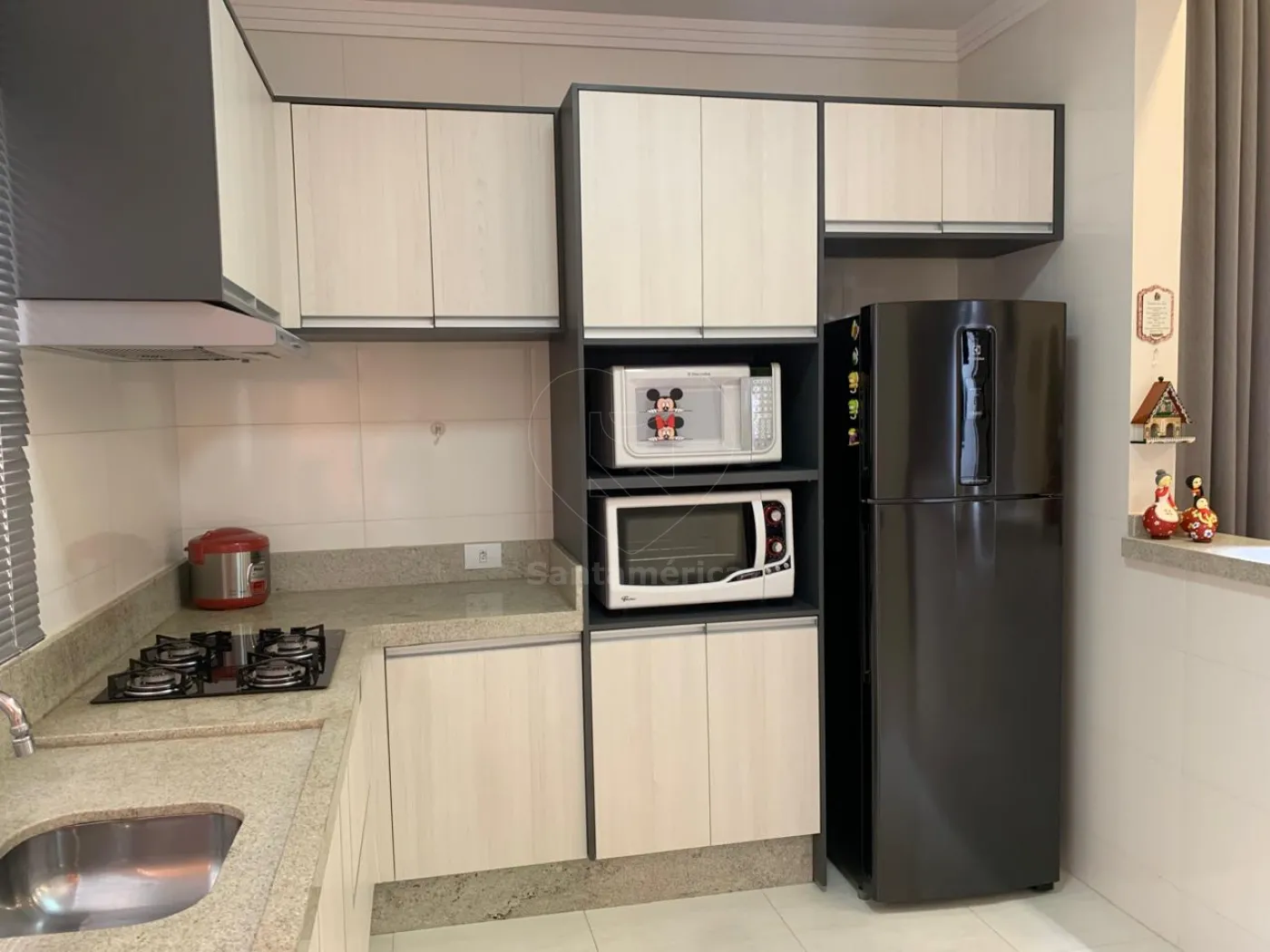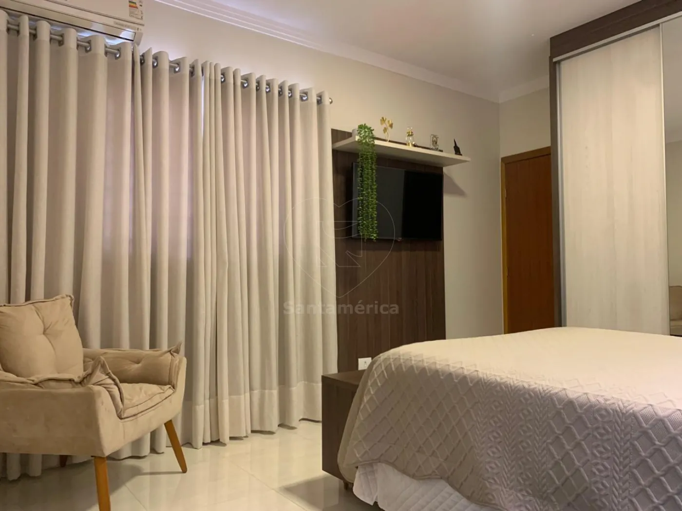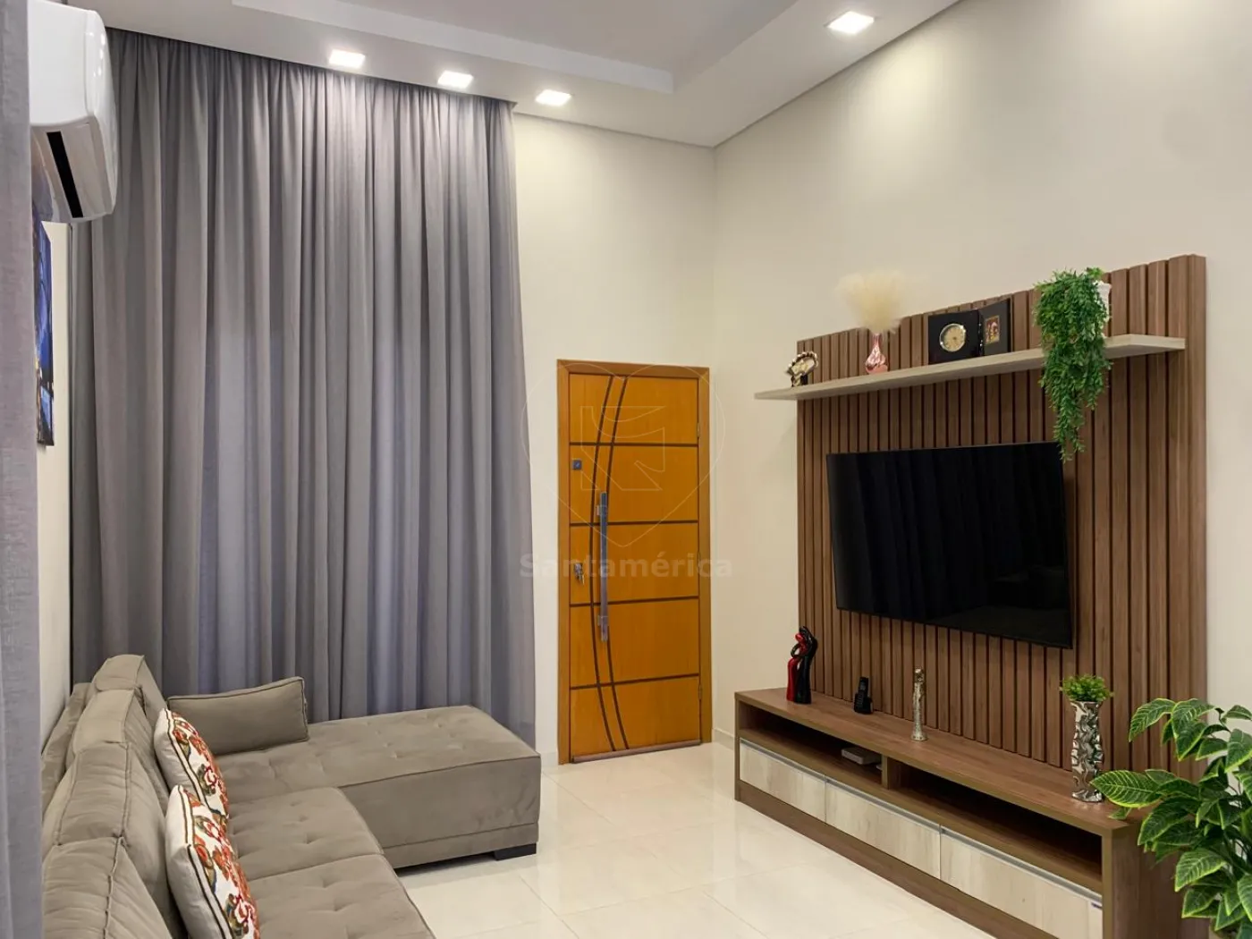 Contendo 3 quartos sendo 1 suíte. Guarda-roupa planejado no quarto principal da suíte, ar condicionado e iluminação em LED, sala com painel de televisão, rack, iluminação em LED, ar condicionado e cortina em linho, a cozinha é estilo americana, já com armários planejados, suggar , cocktop, persiana e iluminarias, banheiros com box em vidro e pia em porcelanato, jardim de inverno, área de serviço com varal de parece, área gourmet com banquetas. A casa possui 2 vagas de garagem.