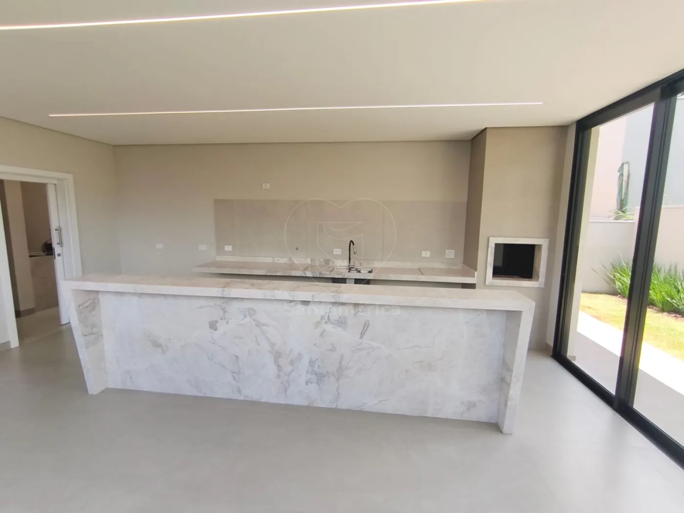 A sala ampla integra se à sala de jantar, criando um ambiente ideal para receber amigos e familiares. A cozinha americana possui bancada e conexão direta com a área gourmet com churrasqueira, proporcionando praticidade para momentos de lazer.