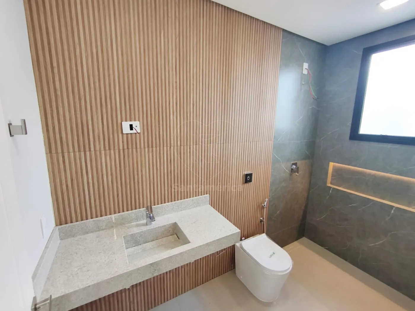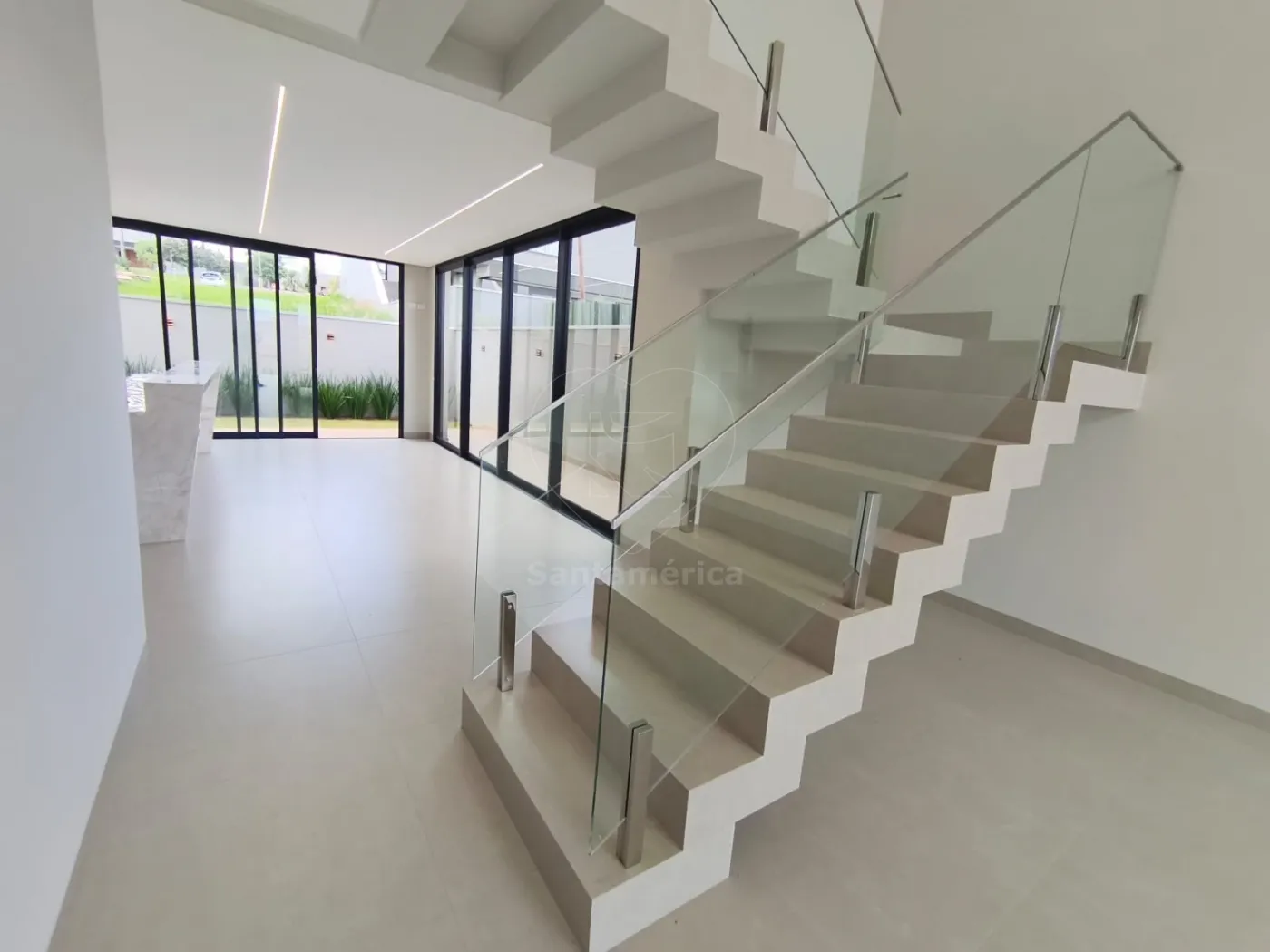 O sobrado dispõe de 3 suítes, todas com persianas automatizadas. A suíte master conta com sacada. O imóvel possui ainda espaço para escritório, iluminação em LED em toda a casa e 5 banheiros distribuídos entre os ambientes, incluindo lavabo na sala e banheiro na área do fundo. Conta também com lavanderia bem posicionada e funcional.