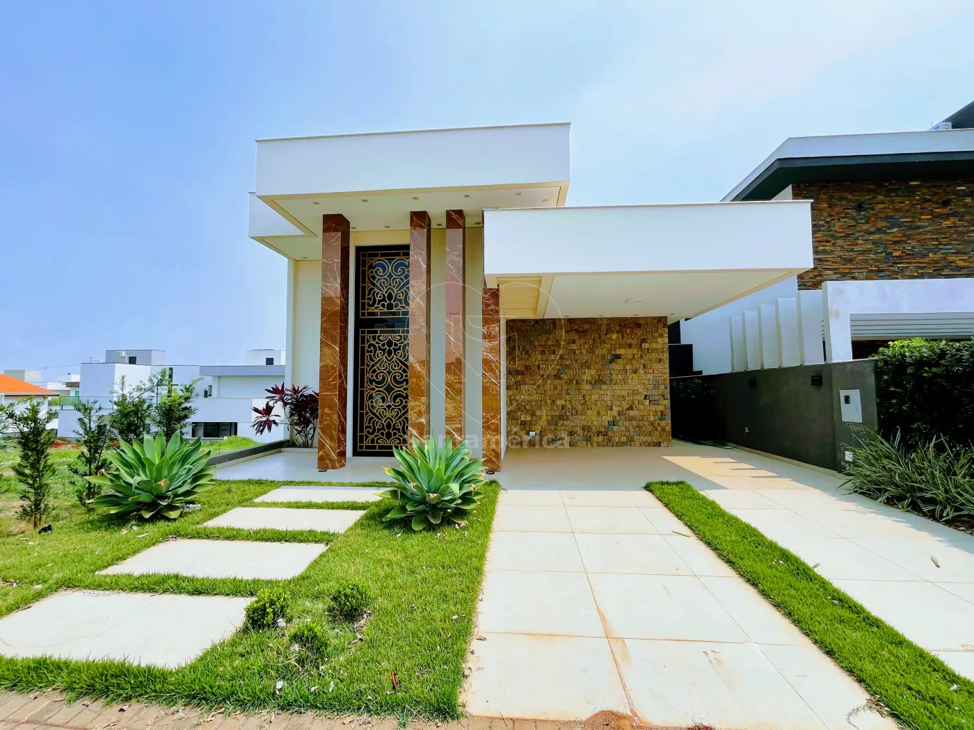 Esta elegante casa térrea no Condomínio Aranguá é um exemplar de sofisticação e conforto. Com 3 suítes e 1 lavabo, oferece privacidade e conveniência. A sala de pé direito alto e o jardim de inverno criam um ambiente iluminado e acolhedor, enquanto a cozinha em conceito aberto se integra à área social, perfeita para receber.