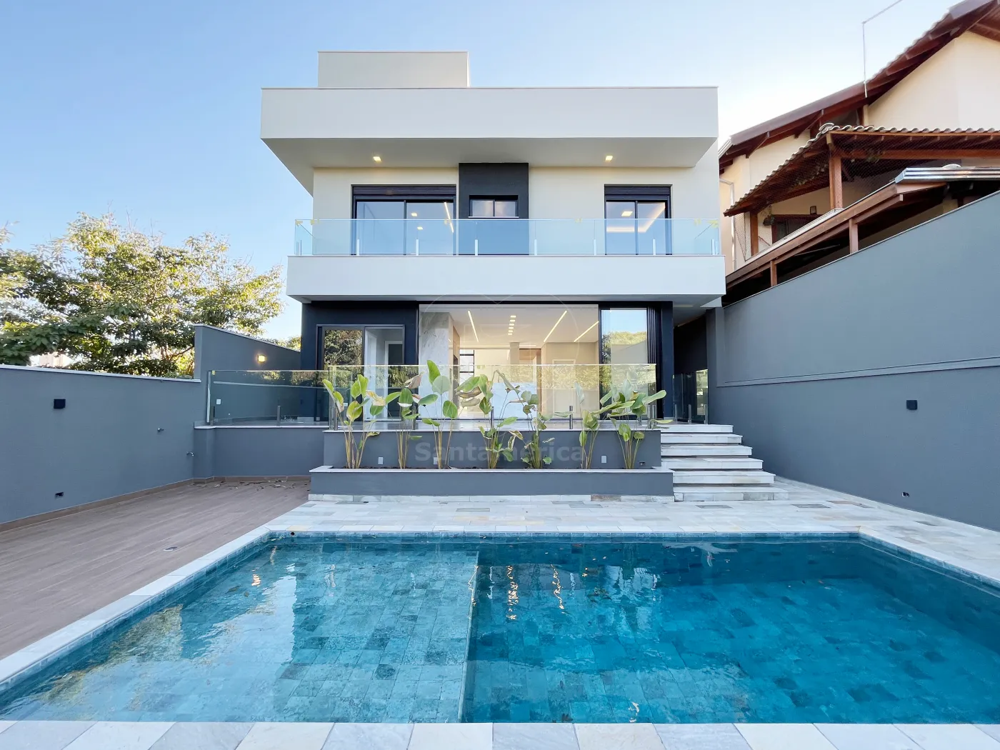 Com acabamentos de primeira linha, este imponente sobrado surpreende com seus ambientes amplos, bem iluminados e perfeitamente integrados. São três suítes, sendo uma máster, oferecendo todo o conforto que você merece. O living espaçoso se conecta à varanda com vista para a piscina aquecida com hidromassagem, criando um cenário perfeito para relaxar ou receber quem você ama.