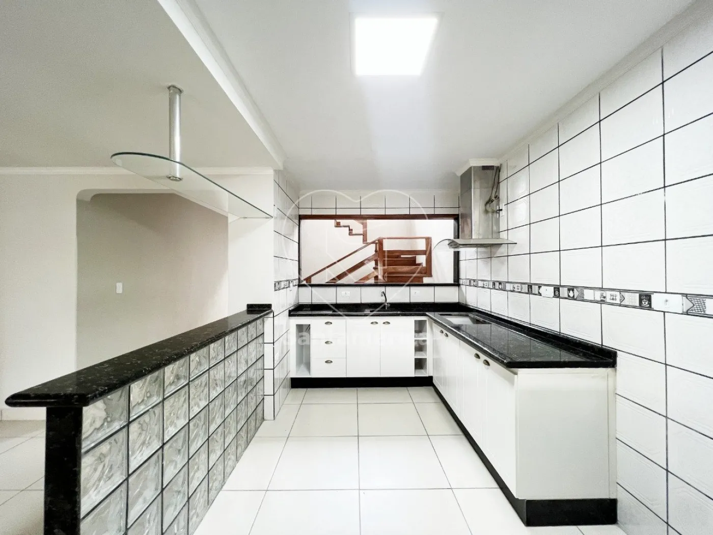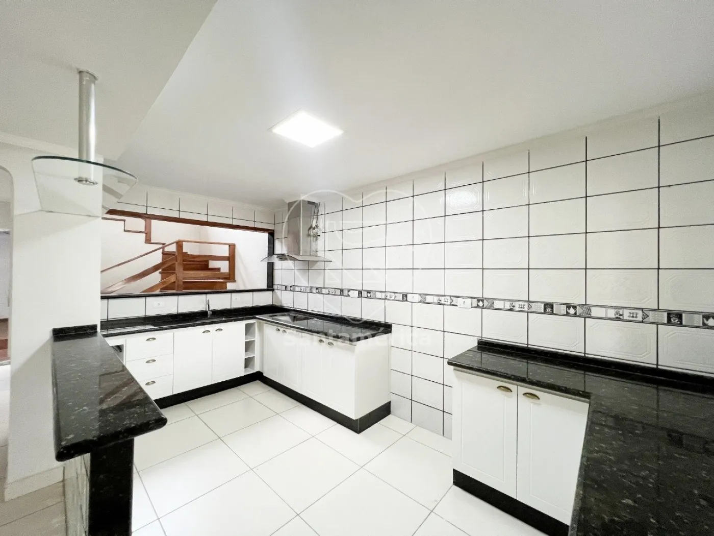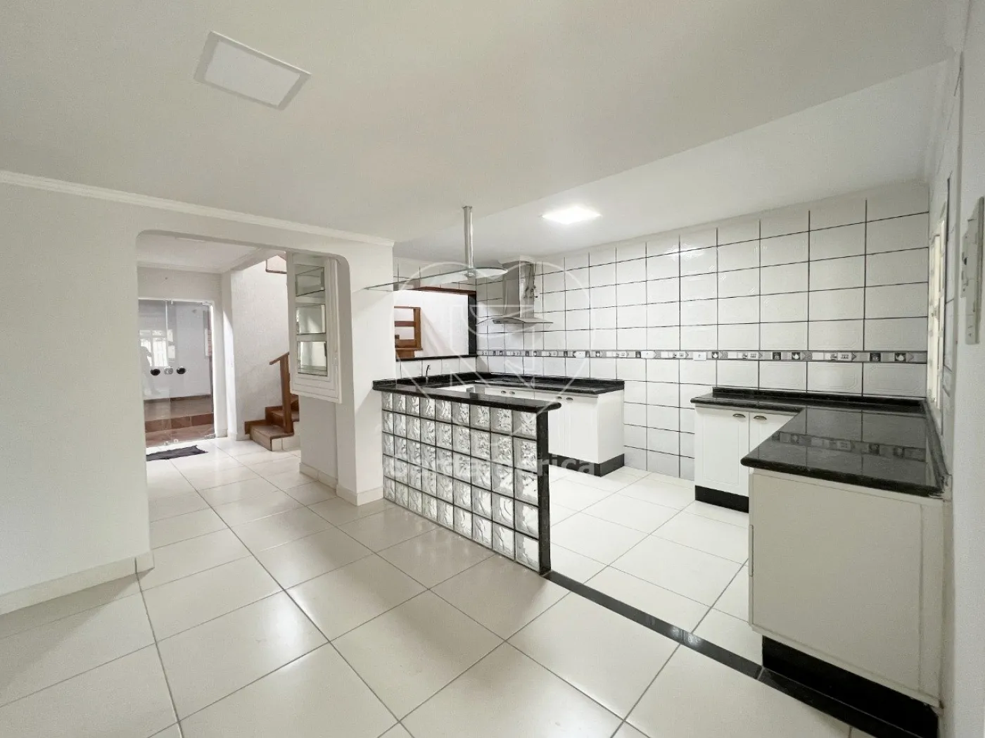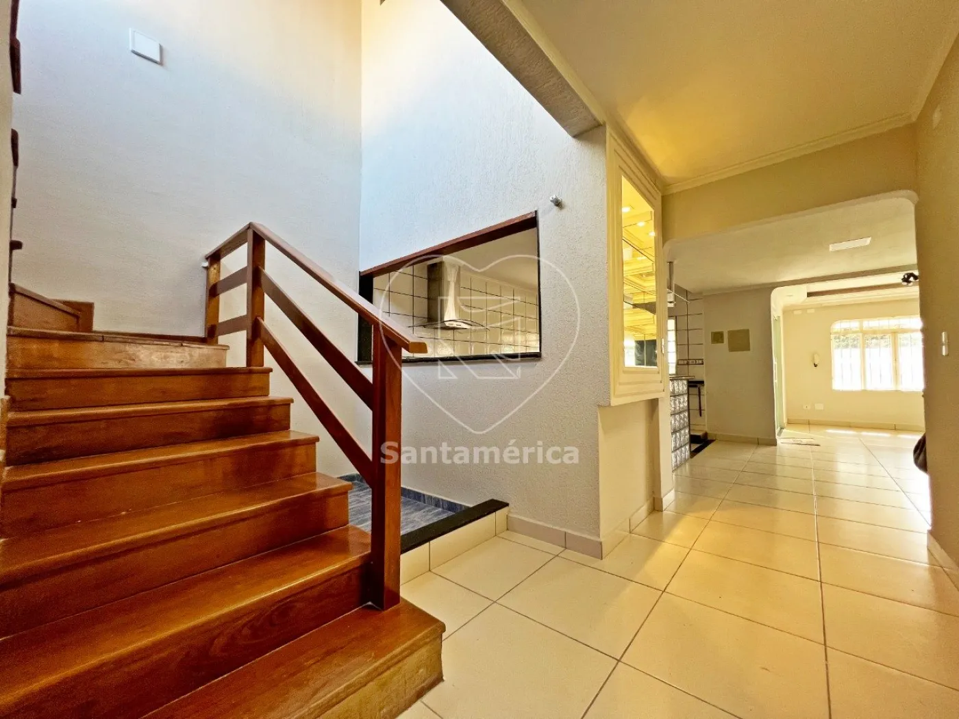 A casa possui uma ampla sala integrada à cozinha americana, criando um ambiente perfeito para o dia a dia e momentos de convivência. A copa oferece um espaço agradável para refeições. A escada em madeira adiciona um toque de sofisticação ao imóvel.