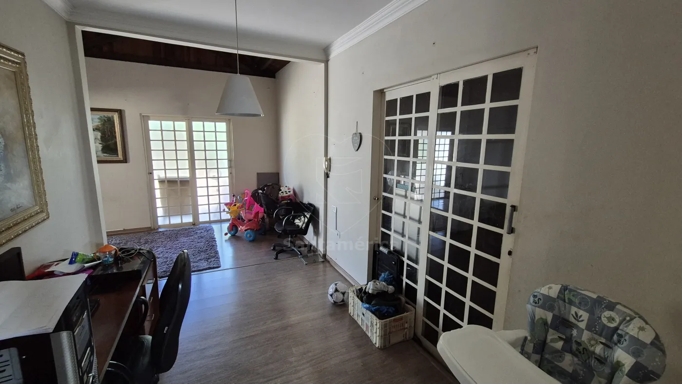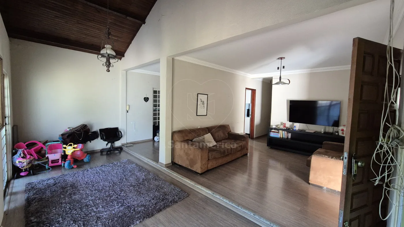 O imóvel possui varanda com estrutura em madeira e hall de entrada integrado à sala de televisão e à copa. Conta com despensa, 3 quartos com guarda-roupas planejados, sendo 1 suíte. A cozinha é planejada e a área de serviço é integrada a mais uma cozinha. A edícula dispõe de mais 1 quarto, sala e banheiro. A garagem acomoda até 4 veículos, sendo 3 vagas cobertas, com portão eletrônico e portão separado para pedestre.