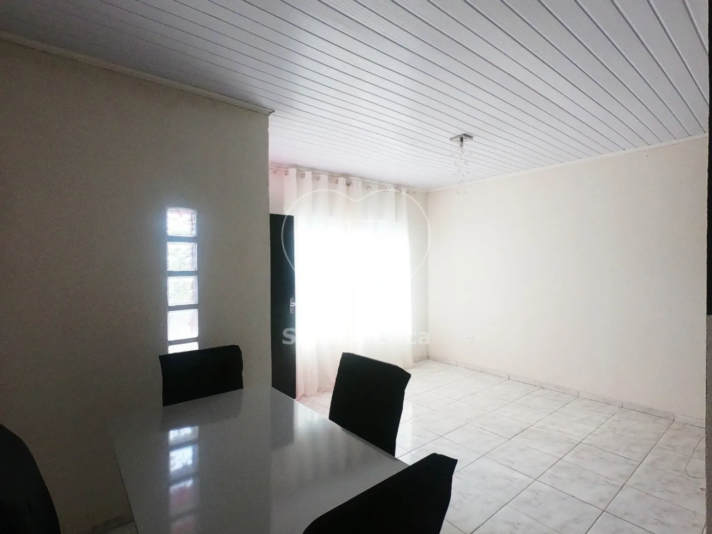 Casa contendo 2 quartos, sala ampla para dois ambientes, cozinha com armários, banheiro social com box em vidro, espelho e prateleiras, área de serviço independente, garagem para um carro e quintal.