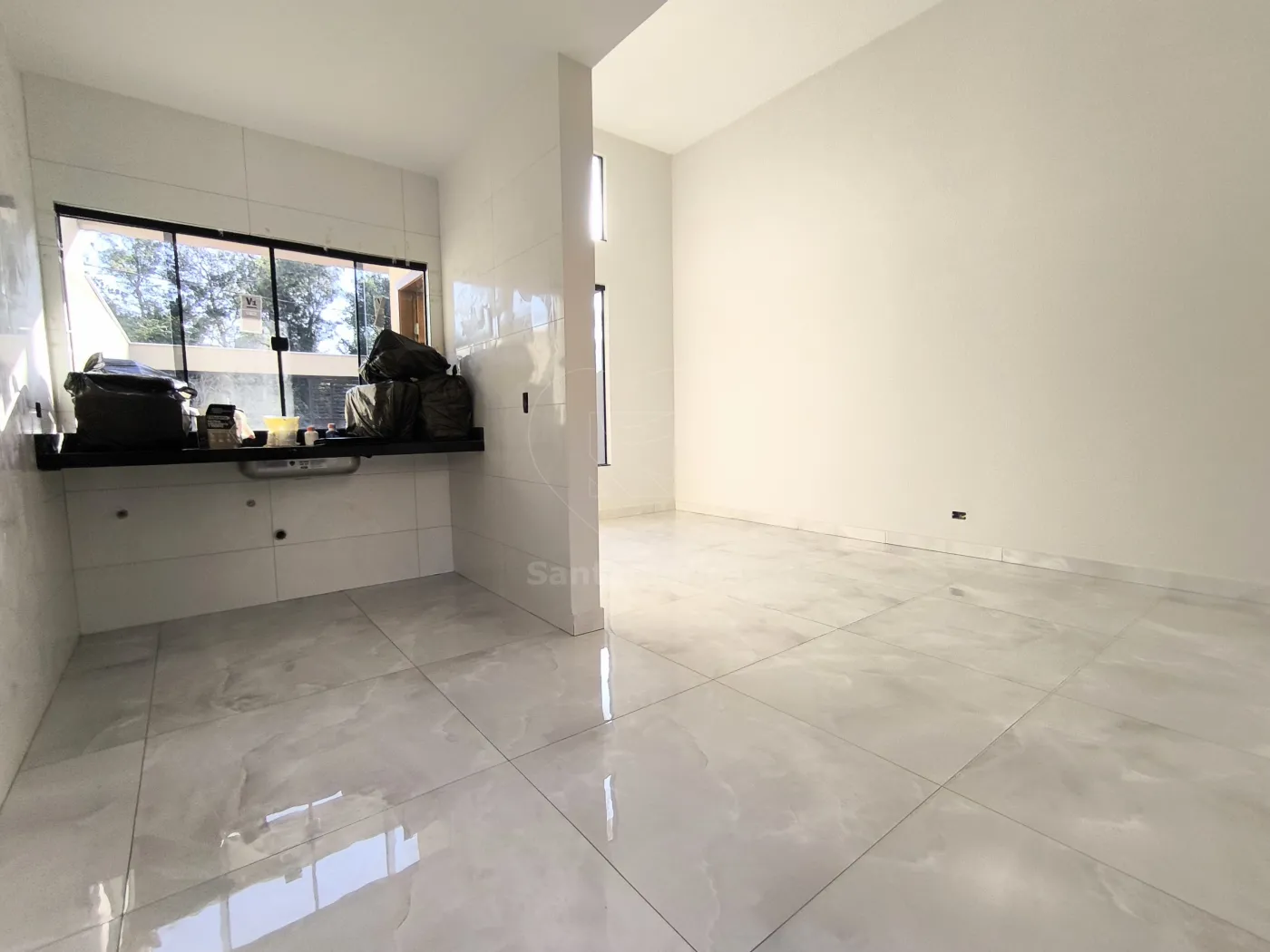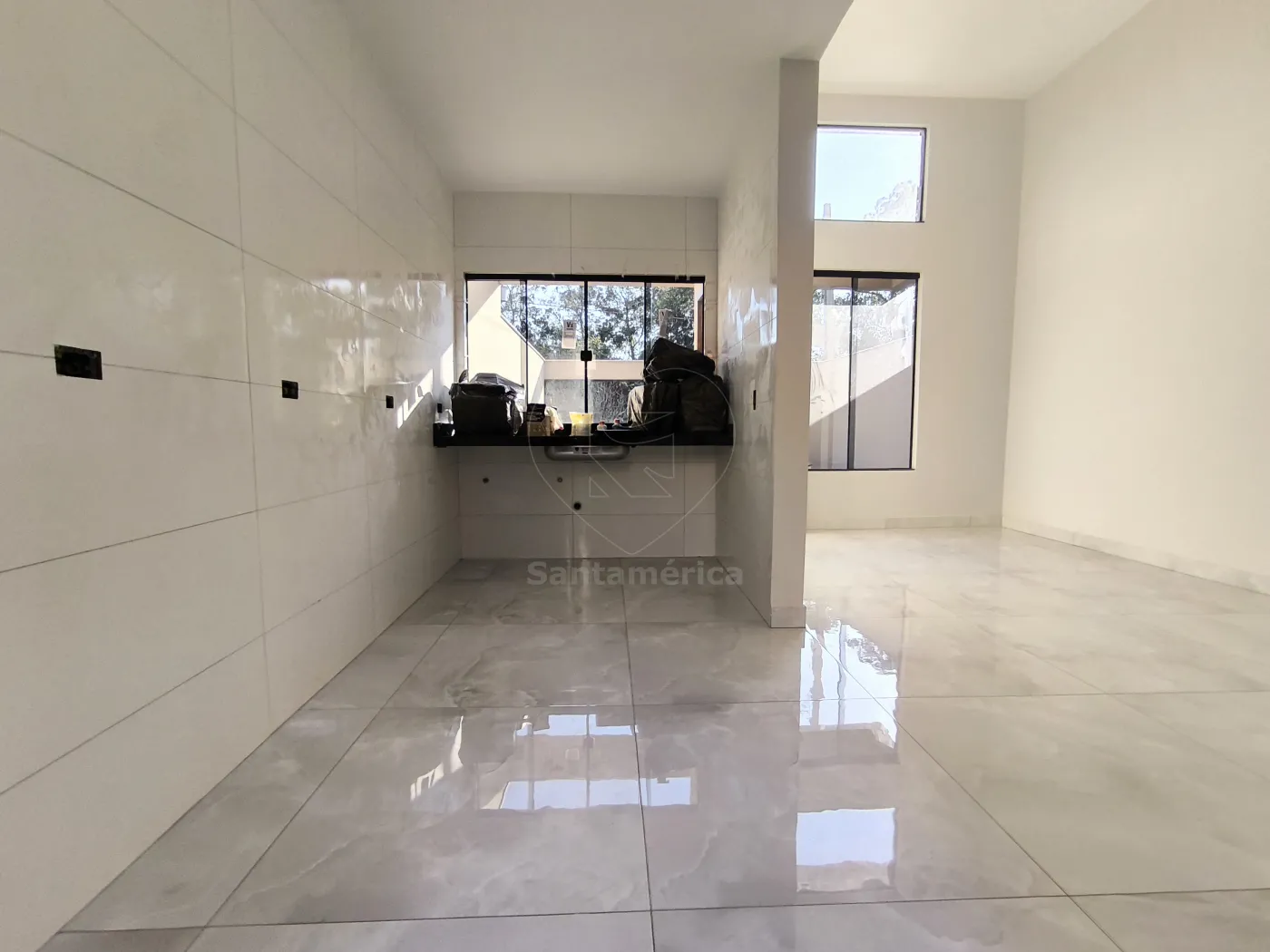 O imóvel é novo, nunca habitado, com 127,90 m² de área total e 82 m² de área útil. Possui sala ampla com pé-direito alto, piso em porcelanato e excelente iluminação natural, integrada à cozinha. Nos fundos, conta com espaço gourmet com churrasqueira e lavanderia. Dispõe ainda de banheiro social e 3 dormitórios, sendo 1 suíte, todos com piso laminado.