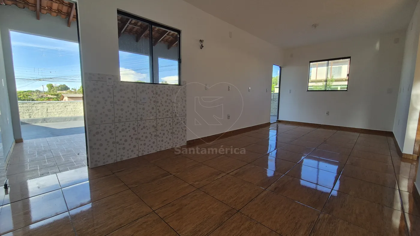 O imóvel possui cozinha integrada com a sala, 2 quartos, banheiro social e área de serviço coberta. O terreno conta com quintal amplo e varanda, oferecendo mais espaço externo para o dia a dia.