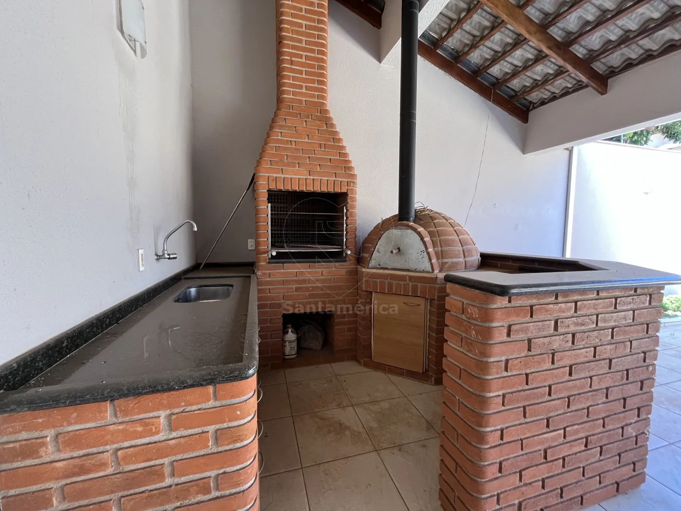 Área com churrasqueira e forno.