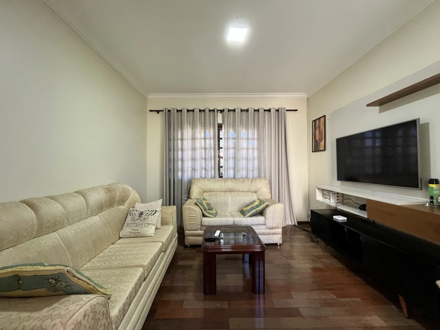 Conta com 3 quartos, sendo 1 suíte, banheiro social, cozinha, sala de jantar, sala de TV e escritório. Nos fundos, dispõe de edícula com churrasqueira, proporcionando um espaço destinado ao lazer e apoio no dia a dia.