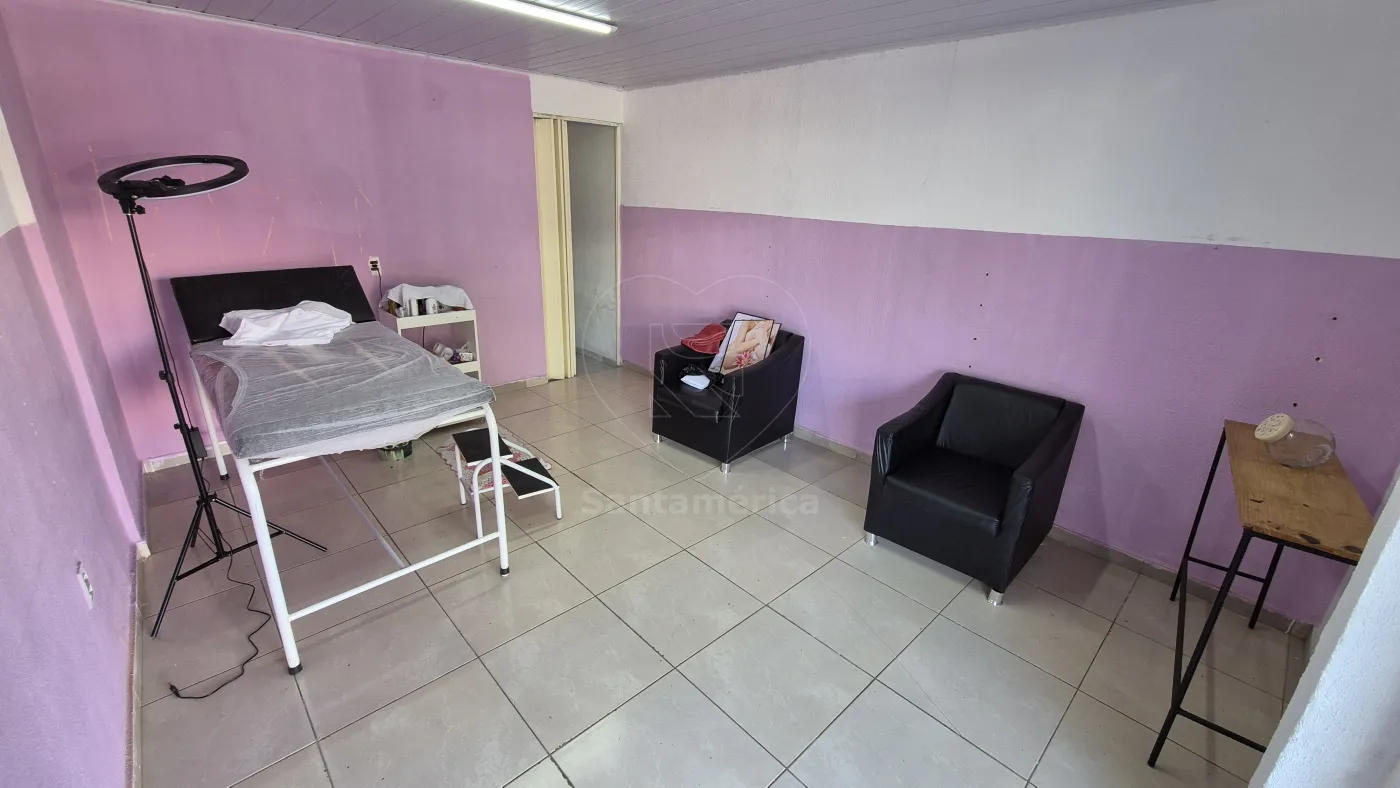 O imóvel conta com 2 salas comerciais, cada uma com banheiro individual, ideais para estabelecimentos comerciais ou prestadores de serviço. Nos fundos, há uma casa com cozinha integrada à sala, 1 quarto, 1 banheiro social, quintal com área de lazer e lavanderia.