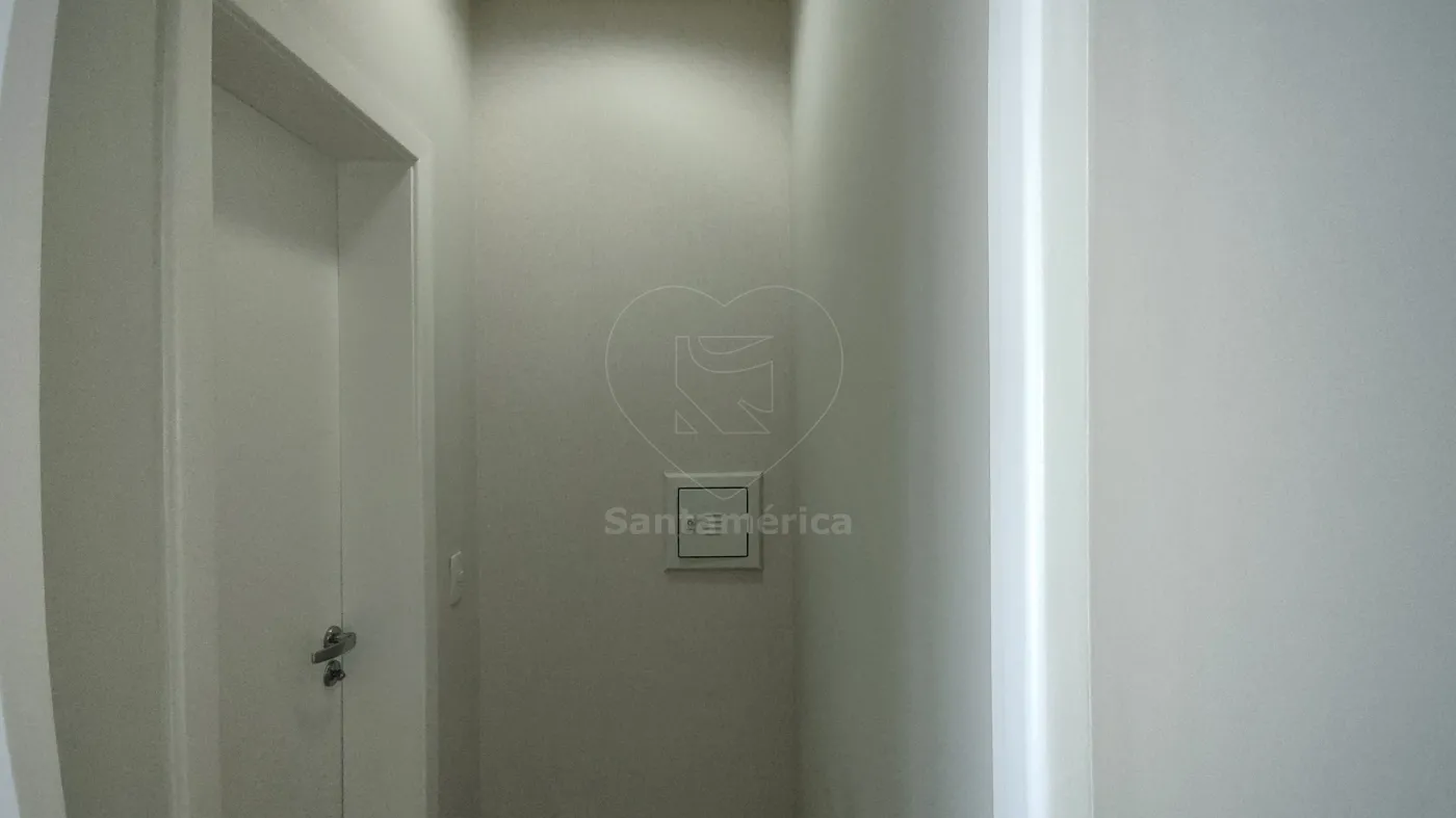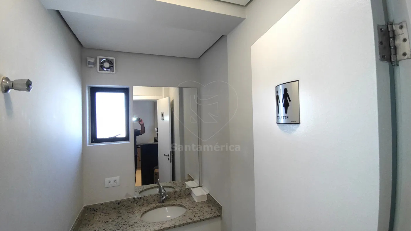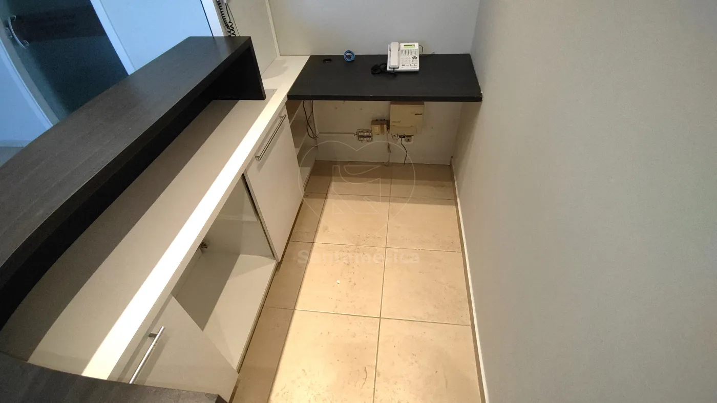 A sala conta com recepção ampla, 2 salas, copa e 2 banheiros, todos equipados com ar-condicionado, proporcionando conforto e praticidade. A recepção e a copa possuem armários planejados e persianas, otimizando o espaço e garantindo funcionalidade. Os banheiros apresentam piso de cerâmica de alta qualidade e luminárias completas, oferecendo um ambiente bem iluminado e agradável.