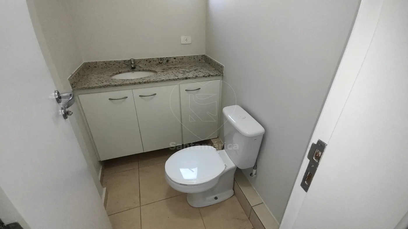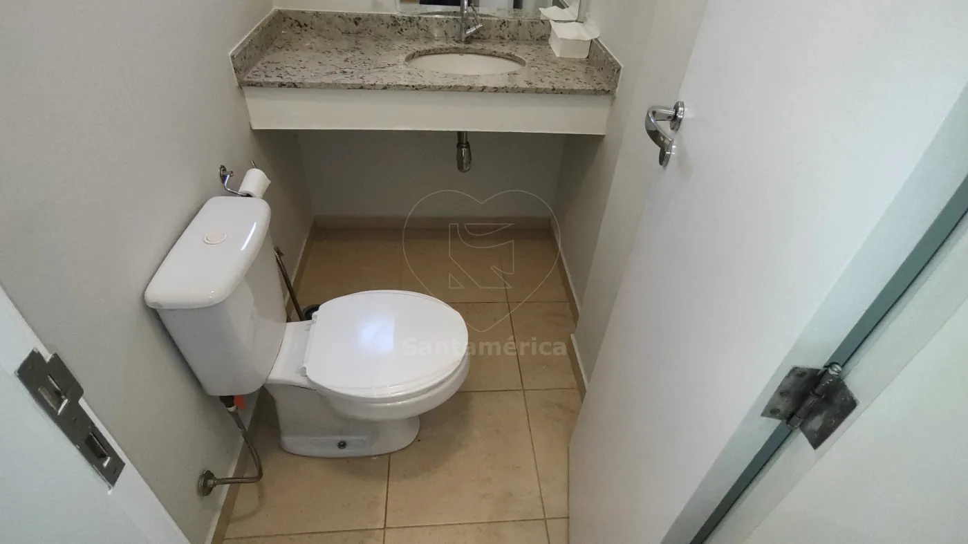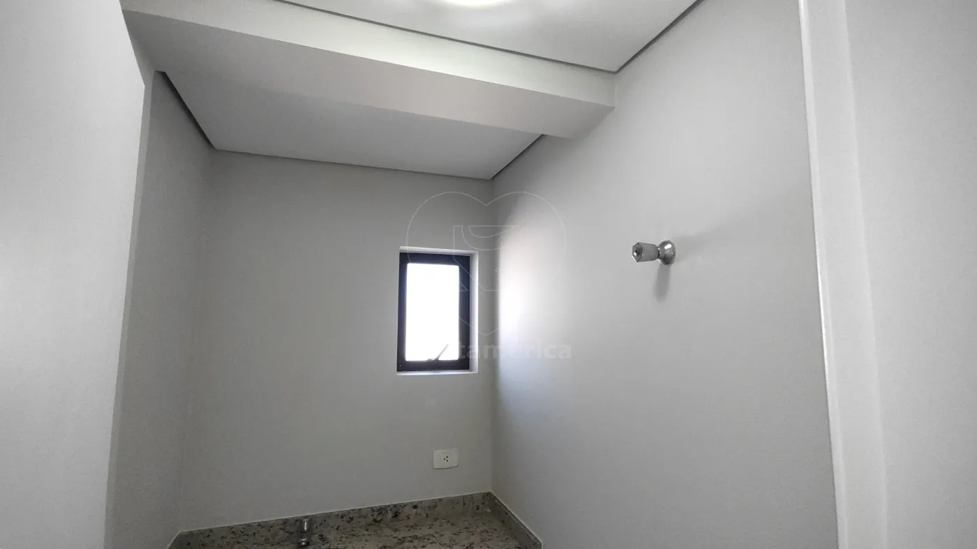 A sala conta com recepção ampla, 2 salas, copa e 2 banheiros, todos equipados com ar-condicionado, proporcionando conforto e praticidade. A recepção e a copa possuem armários planejados e persianas, otimizando o espaço e garantindo funcionalidade. Os banheiros apresentam piso de cerâmica de alta qualidade e luminárias completas, oferecendo um ambiente bem iluminado e agradável.